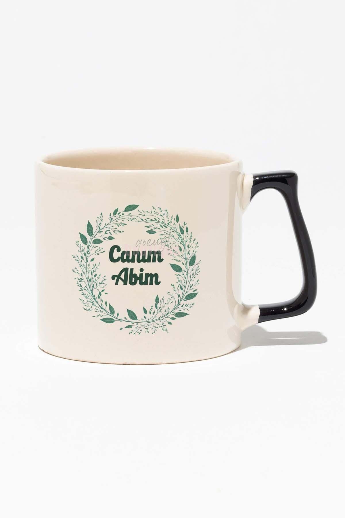 Canım Abim Baskılı Doğum Günü Hediyelik Baskılı Siyah Kulplu Modern Seramik Kupa