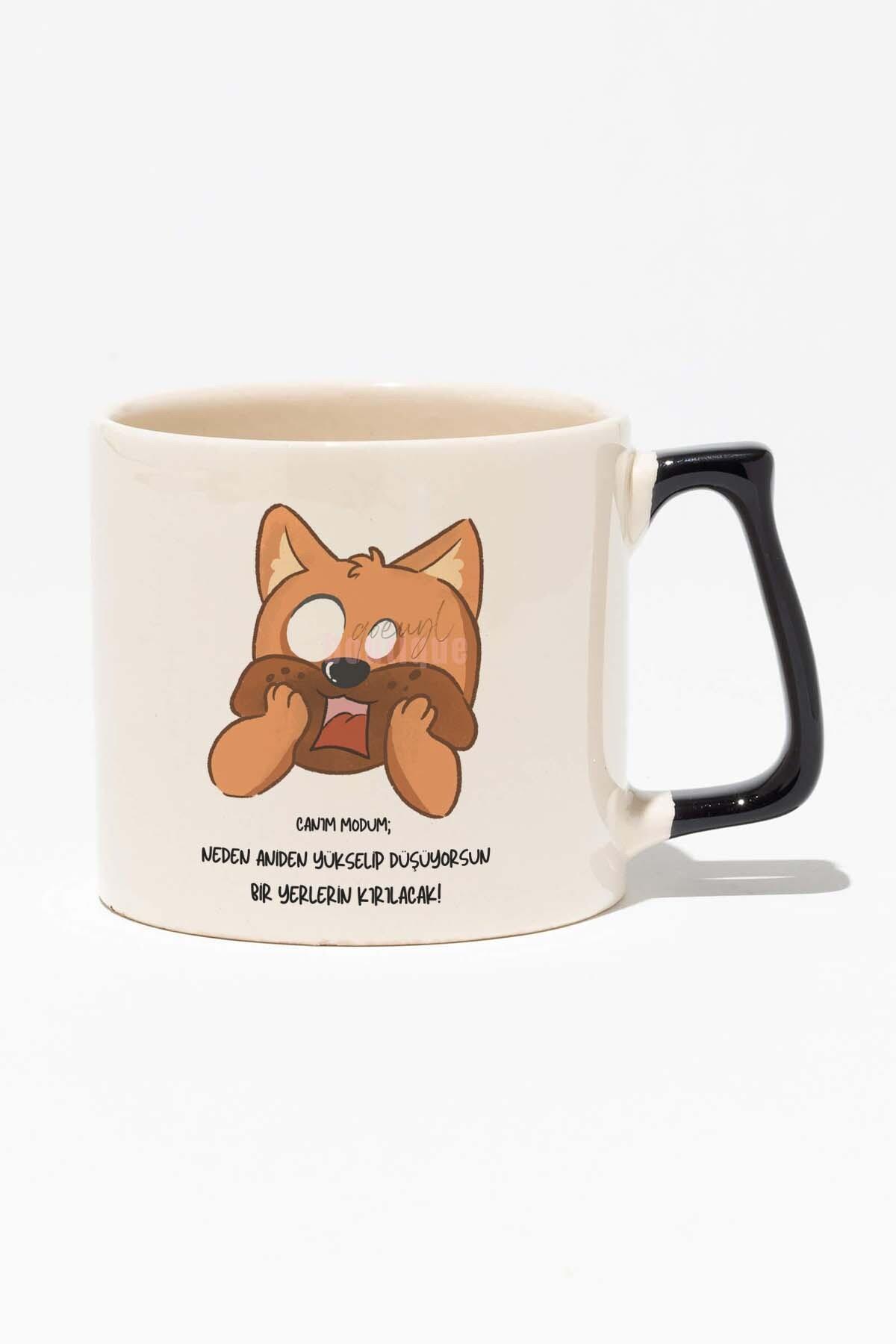 Canım Modum Eğlenceli Hediyelik Beyaz Baskılı Siyah Kulplu Modern Seramik Kupa