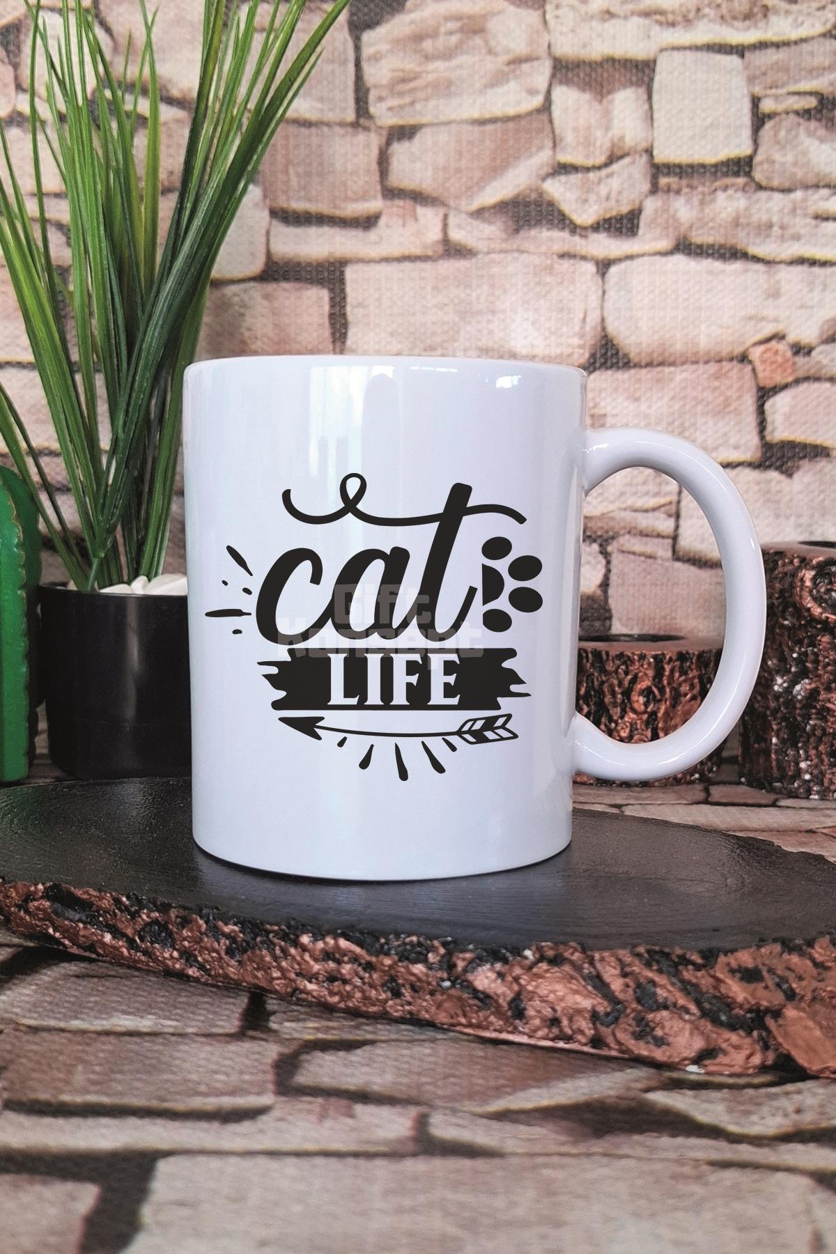 Cat Life Temalı Kedi Hayatı Kedisever Hediyelik Baskılı Çay Kahve Sunum Kupa Bardak
