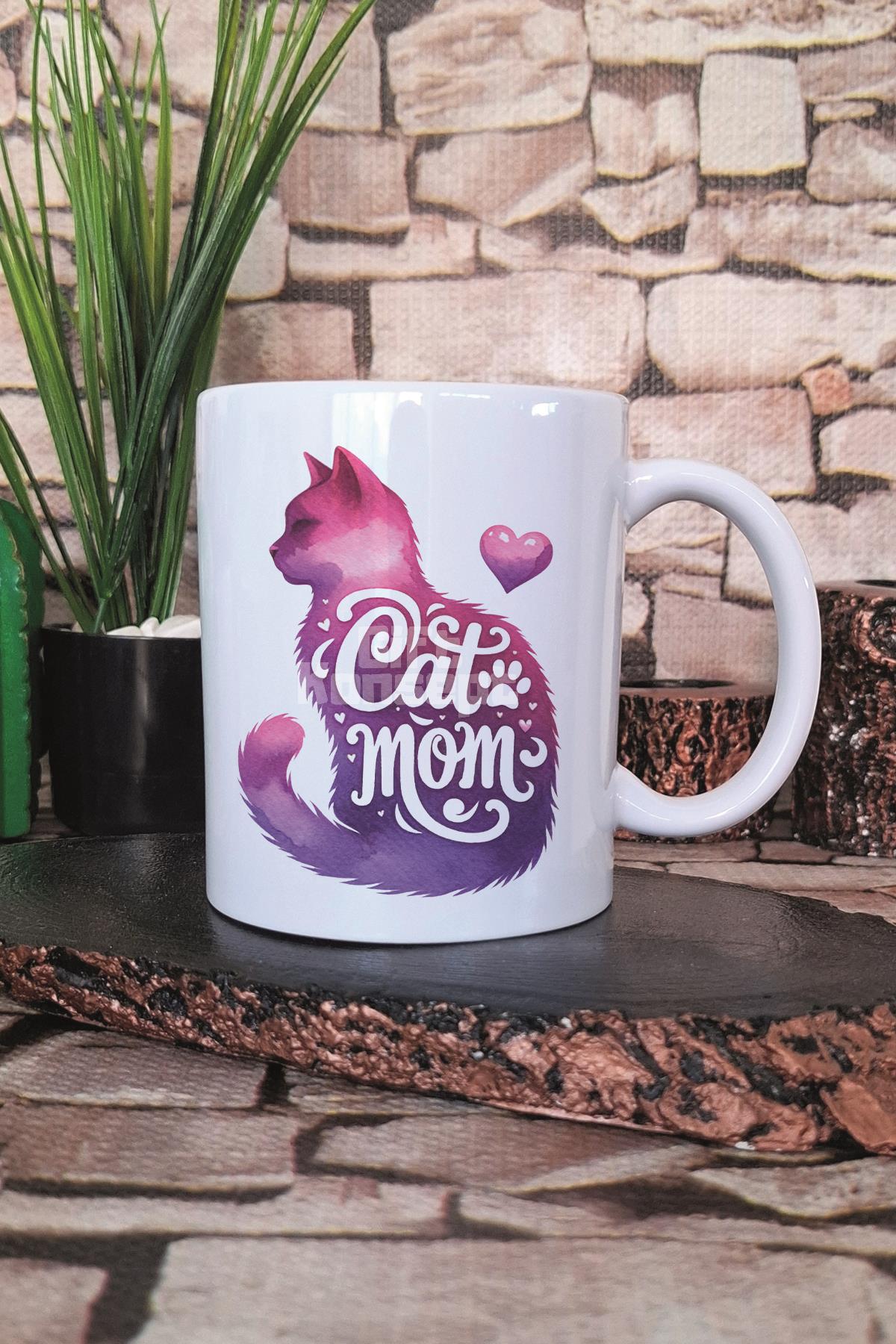 Cat Mom Temalı Kedi Annesi Kedisever Hediyelik Baskılı Çay Kahve Sunum Kupa Bardak