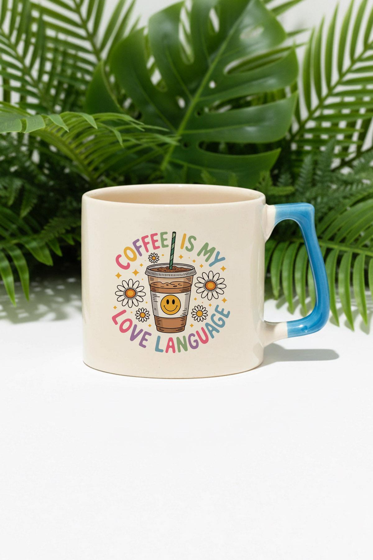 Coffee Is My Love Language No:2 Baskılı Mavi D Kulplu Kupa Bardak