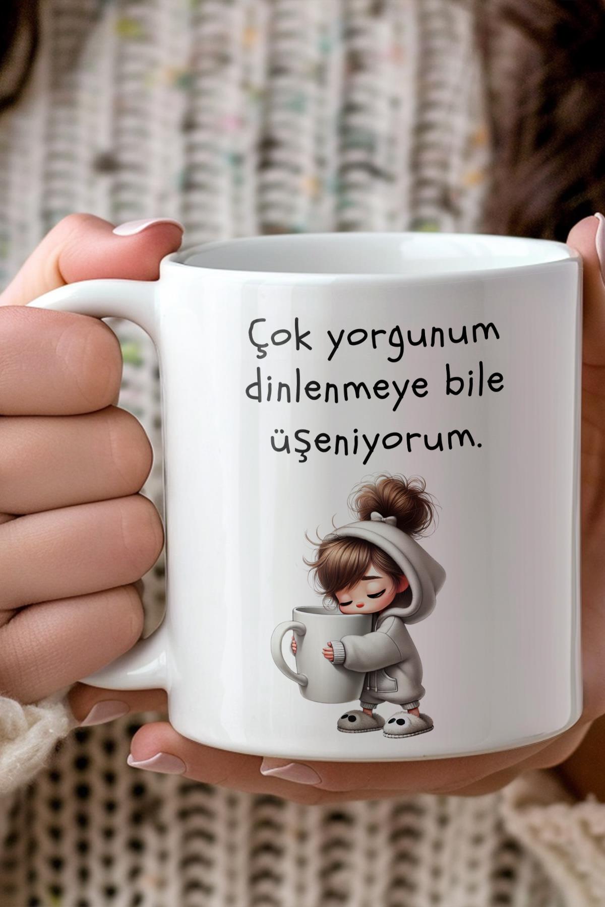 Çok Yorgunum Dinlenmeye Bile Üşeniyorum Tasarımlı Kupa Bardak | Sıradan kupaları unutun! Çok Yorgunum Dinlenmeye Bile Üşeniyorum baskılı klasik kupa bardak, kaliteli seramik yapısı ve eşsiz tasarımıyla kahve ve çay keyfinizi bambaşka bir boyuta taşıyor.; KALİTE VE DAYANIKLILIK• Yüksek Kaliteli Seramik: Sağlam, pürüzsüz yüzeyi ve parlak görünümüyle uzun ömürlü kullanım sunar.; • İdeal Hacim: Kahve, çay, sıcak ya da soğuk içecekler için en uygun ölçülere sahiptir.; HER ORTAMA UYGUNEvde, ofiste, iş toplantılarında veya ders çalışırken size eşlik eden şık ve kullanışlı bir kupadır.; Sabah kahvesinde enerji, akşam çayında huzur sunar.; HEDİYELİK VE KİŞİSELSevdiklerinize verebileceğiniz özel ve anlamlı bir hediyedir.; Doğum günü, sevgililer günü, anneler günü, babalar günü ya da özel günlerde tercih edilebilecek en şık hediyelerden biridir.; TASARIM VE ŞIKLIK BİR ARADAÇok Yorgunum Dinlenmeye Bile Üşeniyorum tasarımıyla her yudumda kişiliğinizi yansıtır, masanıza estetik bir hava katar.; Kullanışlı yapısı ve göz alıcı görünümü sayesinde uzun yıllar severek kullanılabilir.; Bu özel Çok Yorgunum Dinlenmeye Bile Üşeniyorum tasarımlı klasik kupa bardak ile günlük içecek keyfinizi estetik ve kişisel bir deneyime dönüştürün.; Hemen sepetinize ekleyin ve farkı yaşayın!