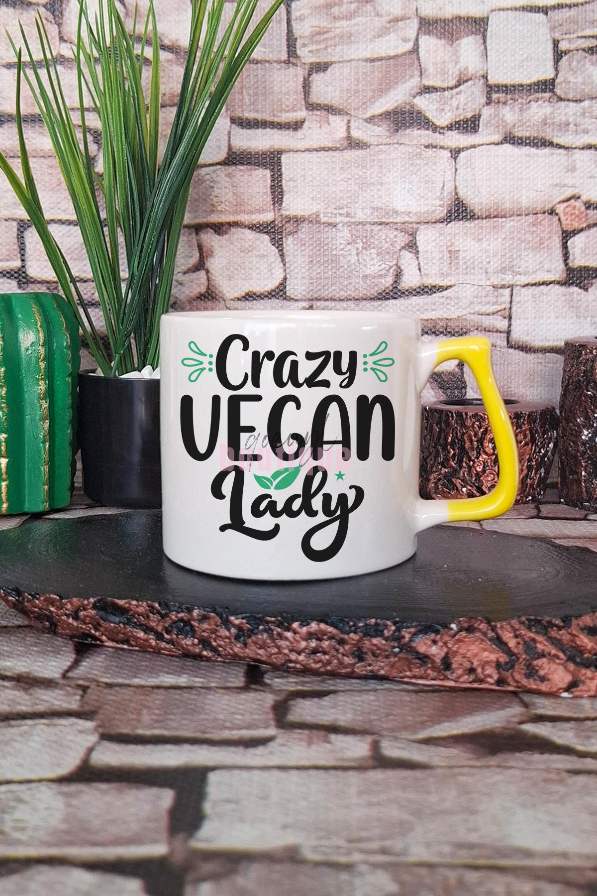 Crazy Vegan Lady Baskılı Vegan Hediyelik Kulplu Kupa Bardak