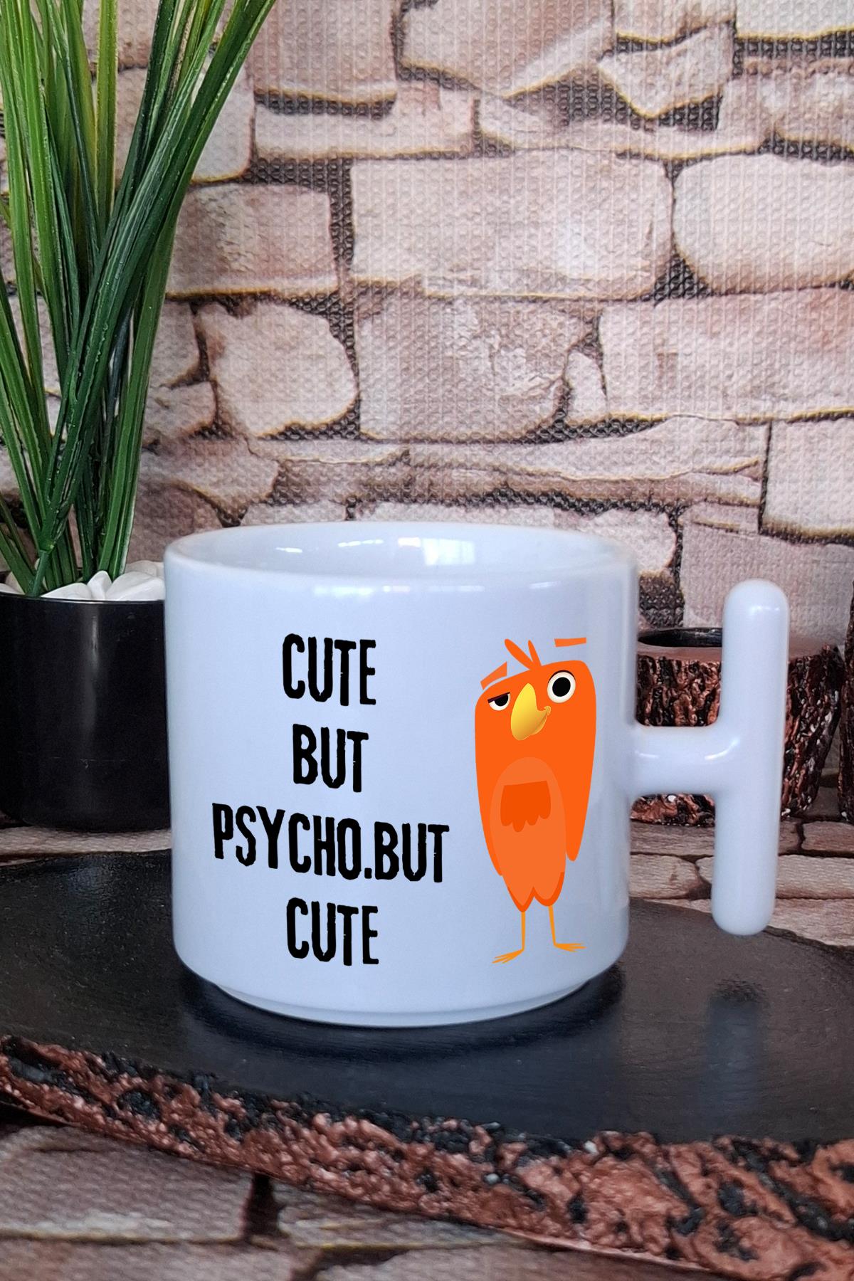 Cute But Psycho But Cute Baskılı Eğlenceli Hediyelik T Kulplu Latte Fincanı Kupa Bardak
