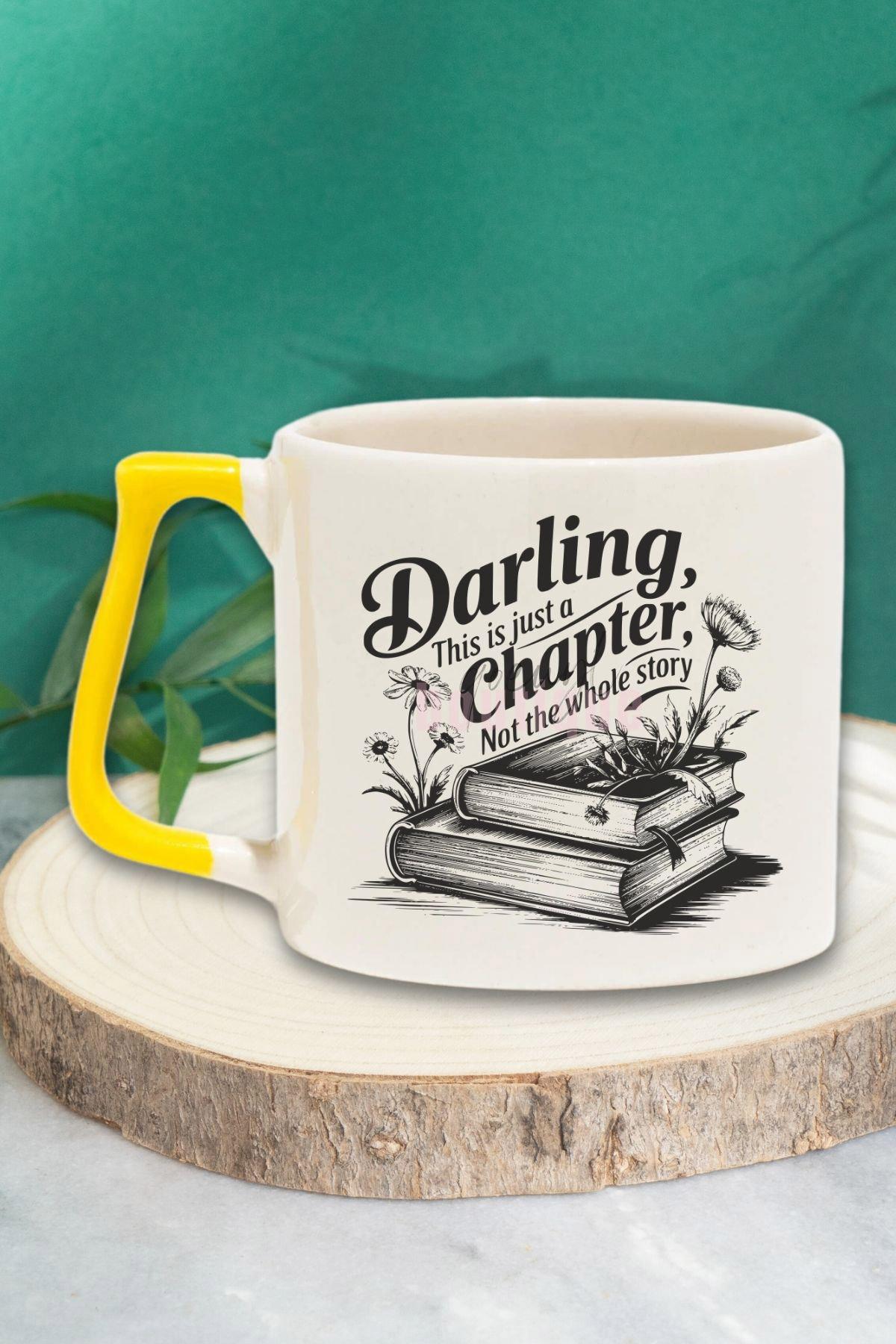 Darling This Is Just A Chapter Yazılı Kitap İlhamlı Söz Hediyelik Sarı Kulplu Kupa Bardak