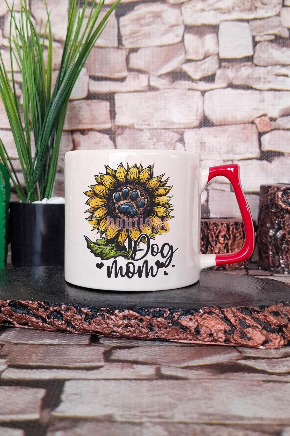 Dog Mom Figürlü Köpek Annesi Köpeksever Sevimli Hediyelik Kulplu Kupa Bardak