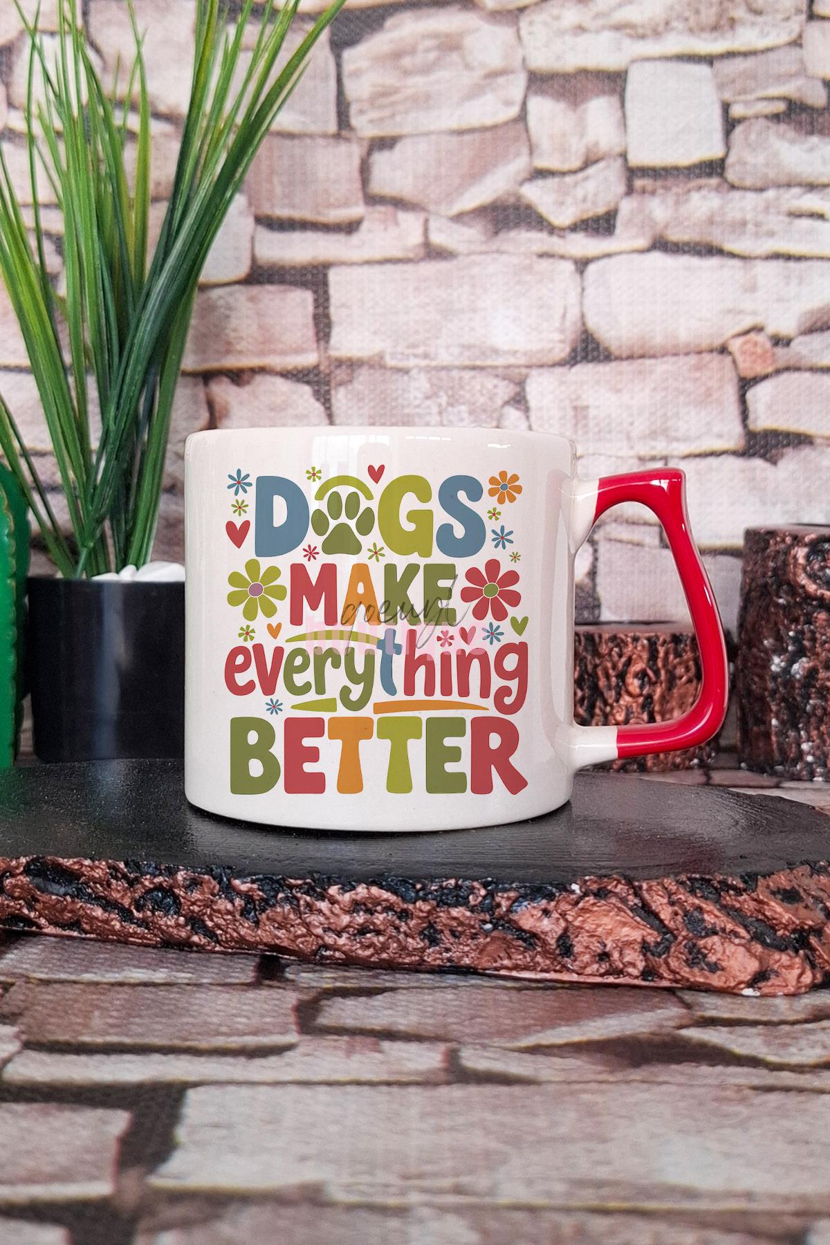 Dogs Make Everything Better Yazılı Köpeksever Mutluluk Hediyelik Kulplu Kupa Bardak