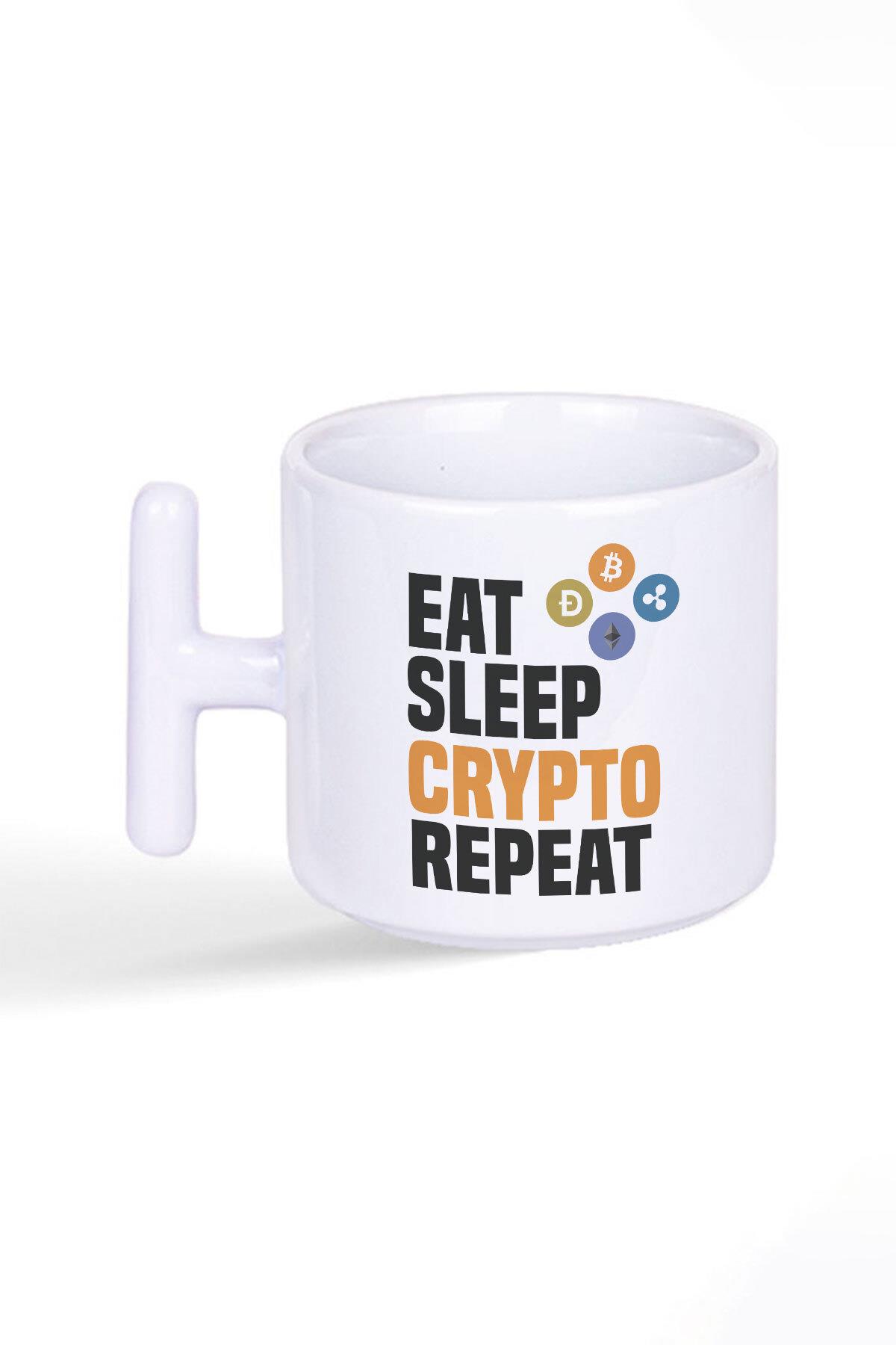 Eat Sleep Crypto Repeat Baskılı Latte Fincanı T Kulplu Kupa Bardak