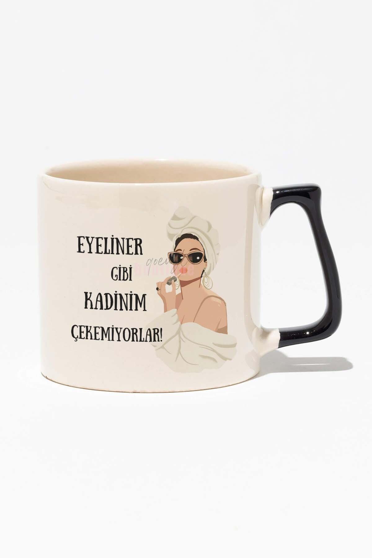 Eyeliner Gibi Kadınım Çekemiyorlar Eğlenceli Hediyelik Baskılı Siyah Kulplu Modern Seramik Kupa