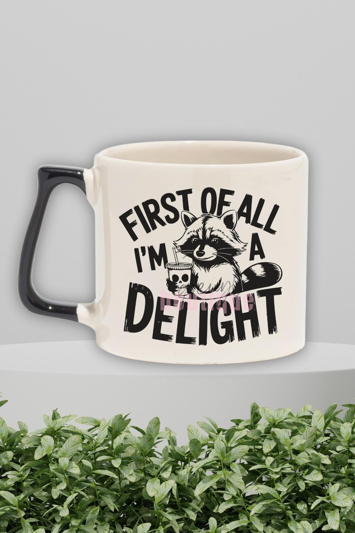 First Of All I'm A Delight 2 Baskılı Komik Kişilik Hediyelik Kulplu Kupa Bardak