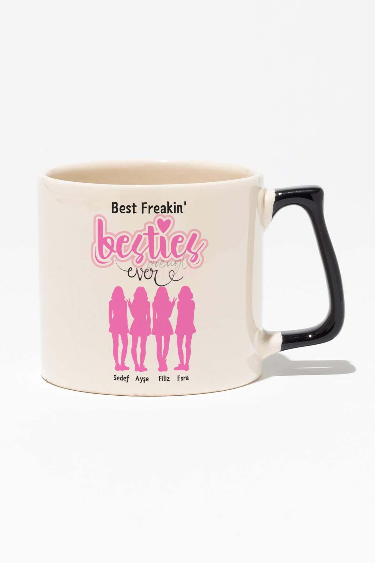 Gelmiş Geçmiş En İyi Arkadaş 4lü-Kişiselleştirilebilir Baskılı Siyah Kulplu Modern Seramik Kupa
