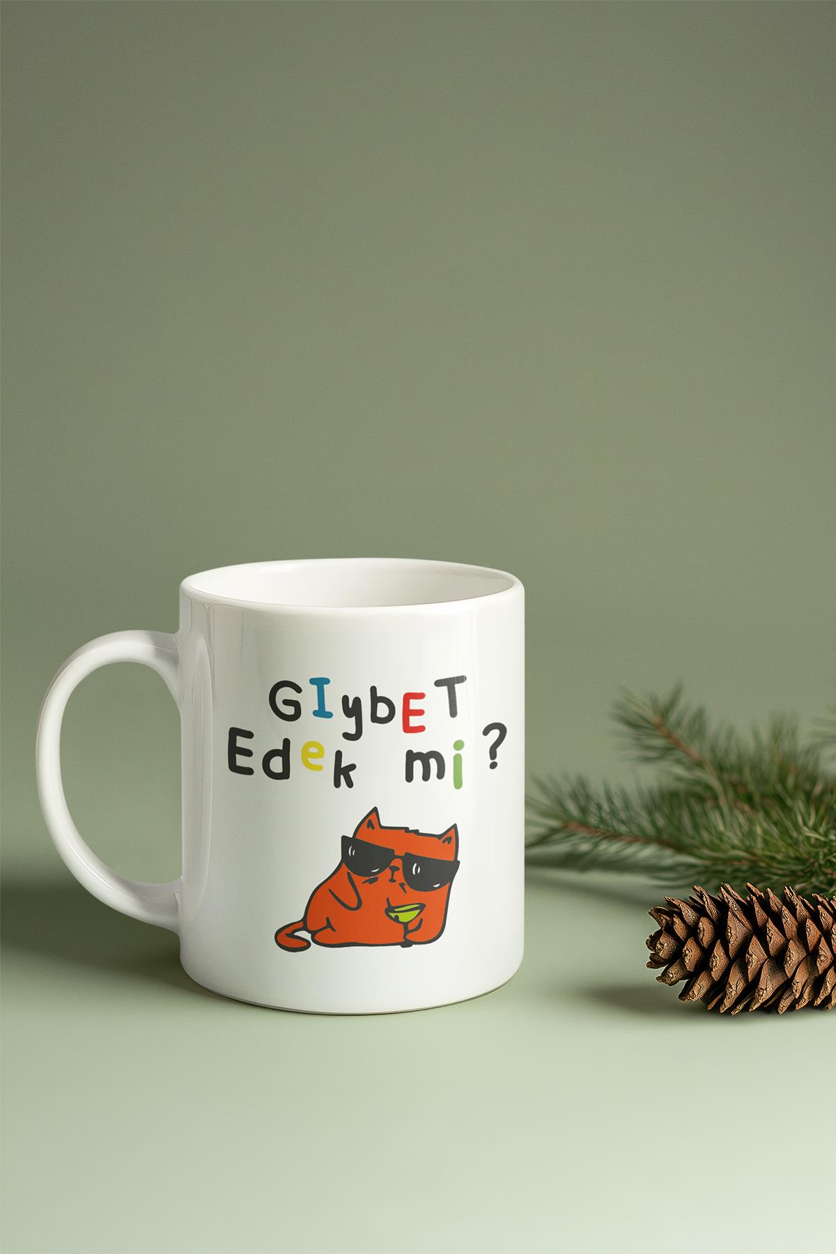 Gıybet Edek Mi-Kedi Baskılı Eğlenceli Hediyelik Beyaz Kupa Bardak