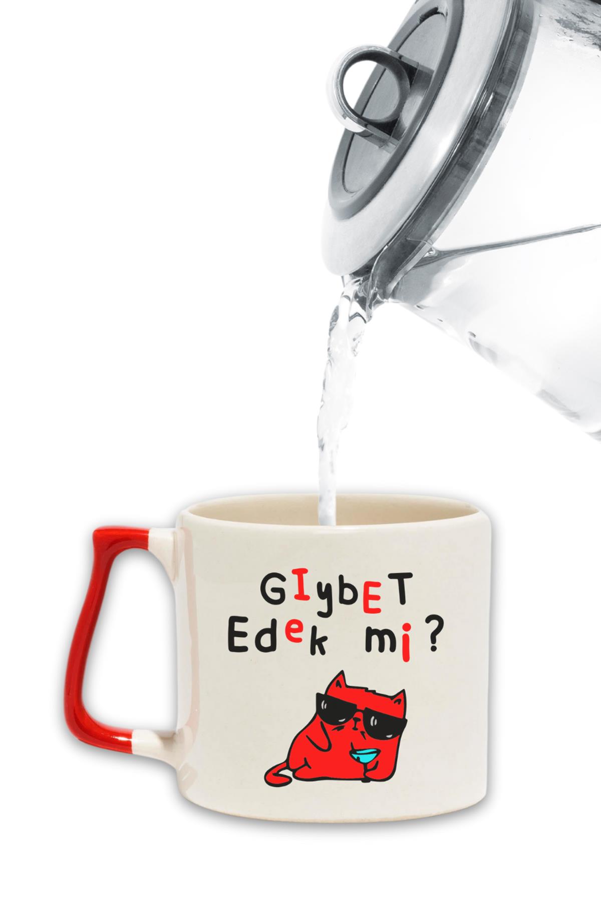 Gıybet Edek Mı-Kedi Baskılı Eğlenceli Hediyelik Renkli Kulplu Modern Seramik Kupa