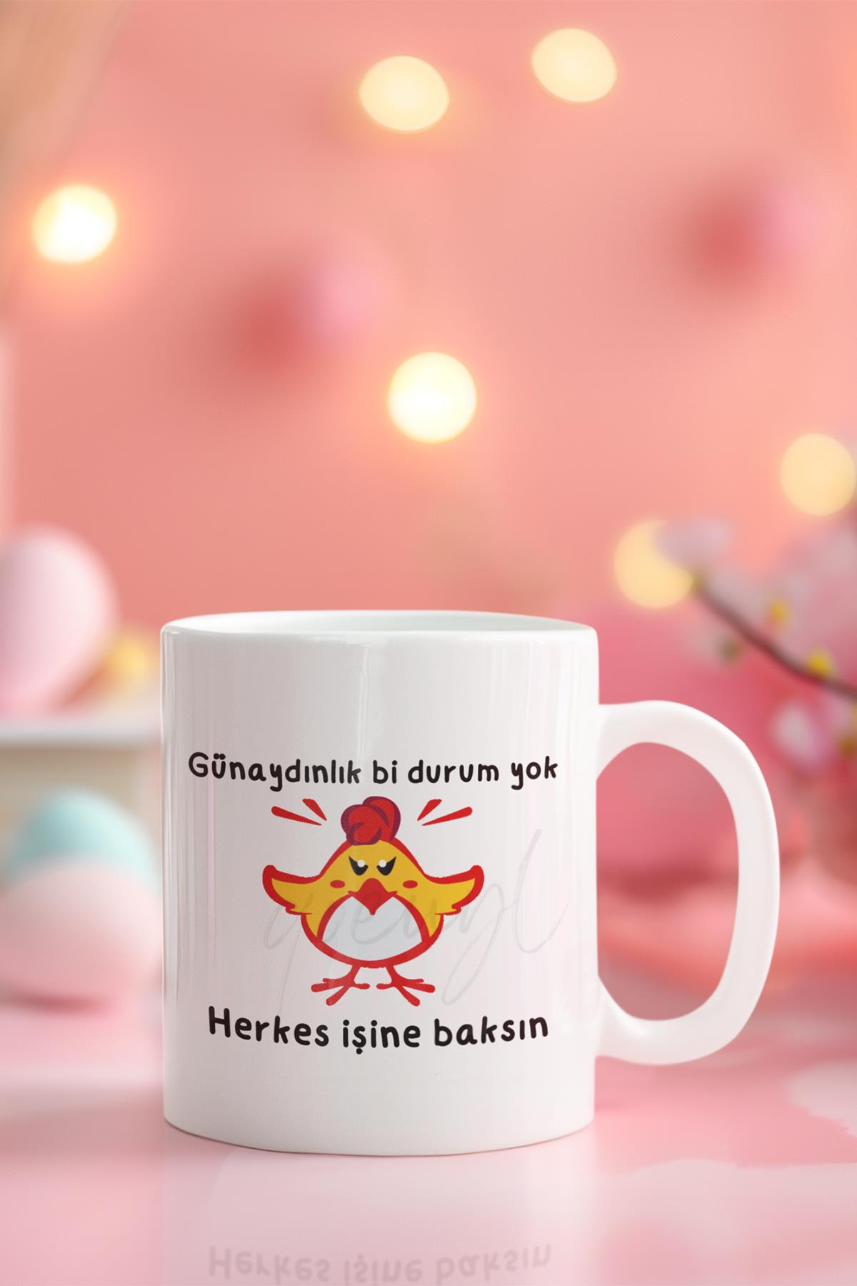 Günaydınlık Bi Durum Yok Herkes İşine Baksın Baskılı Eğlenceli Hediyelik Beyaz Kupa Bardak