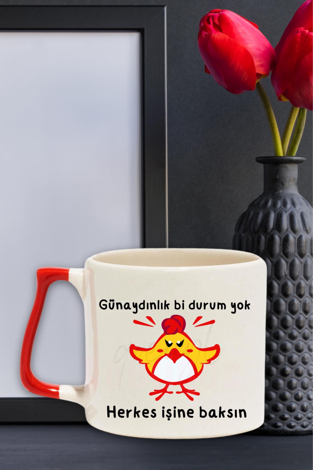 Günaydınlık Bi Durum Yok Herkes İşine Baksın Baskılı Eğlenceli Renkli Kulplu Modern Seramik Kupa