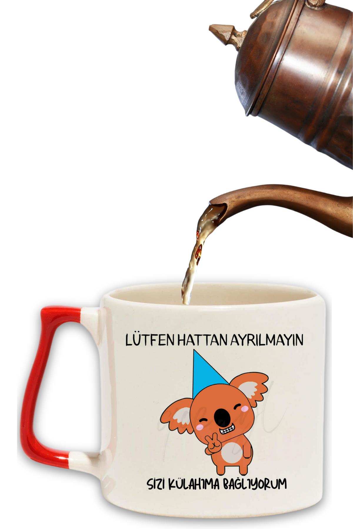 Hattan Ayrılmayın Sizi Külahıma Bağlıyorum Koala Baskılı Eğlenceli Renkli Kulplu Modern Seramik Kupa