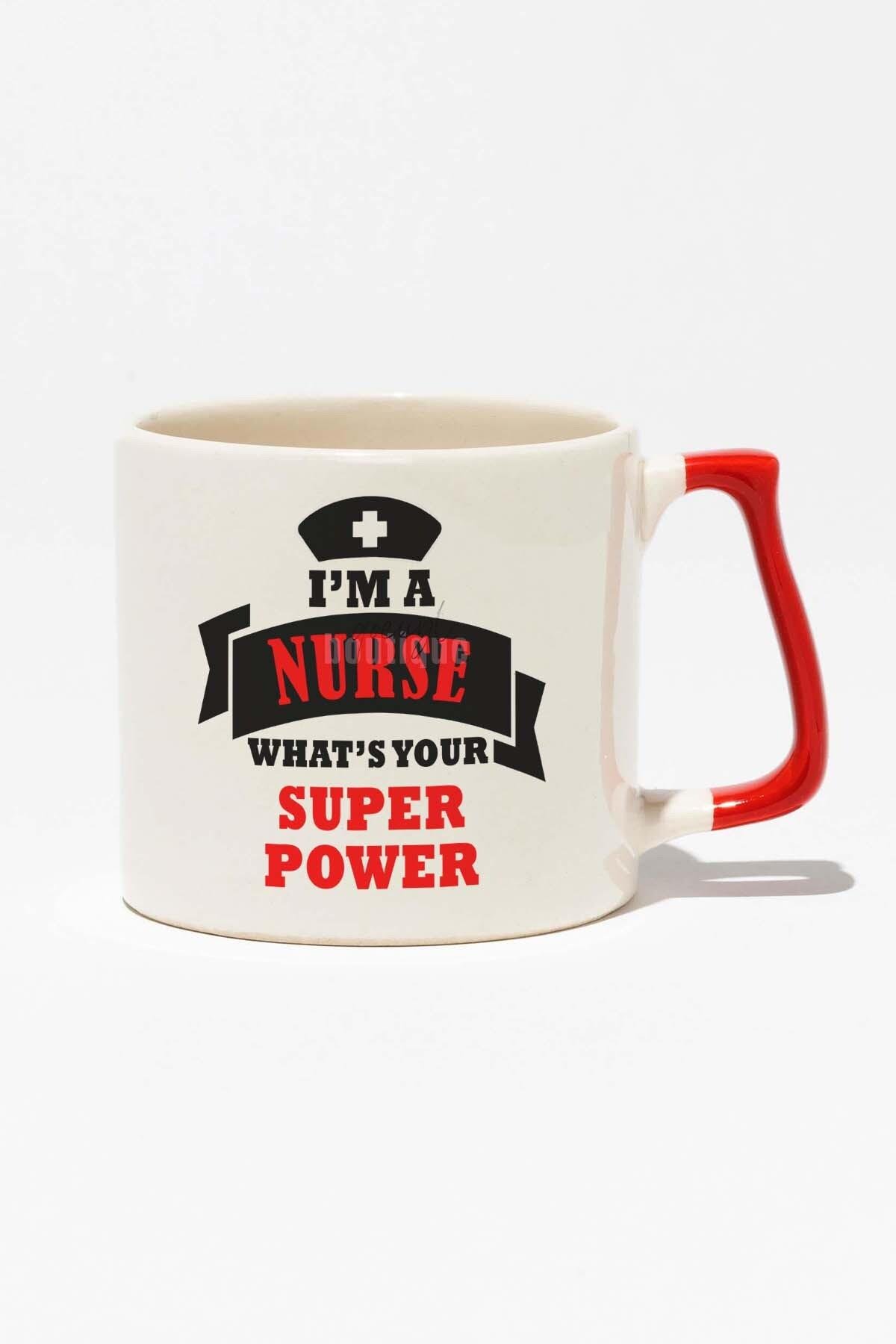 Hemşire Hediye I'm A Nurse Whats Your Super Power Baskılı Kırmızı Kulplu Modern Seramik Kupa