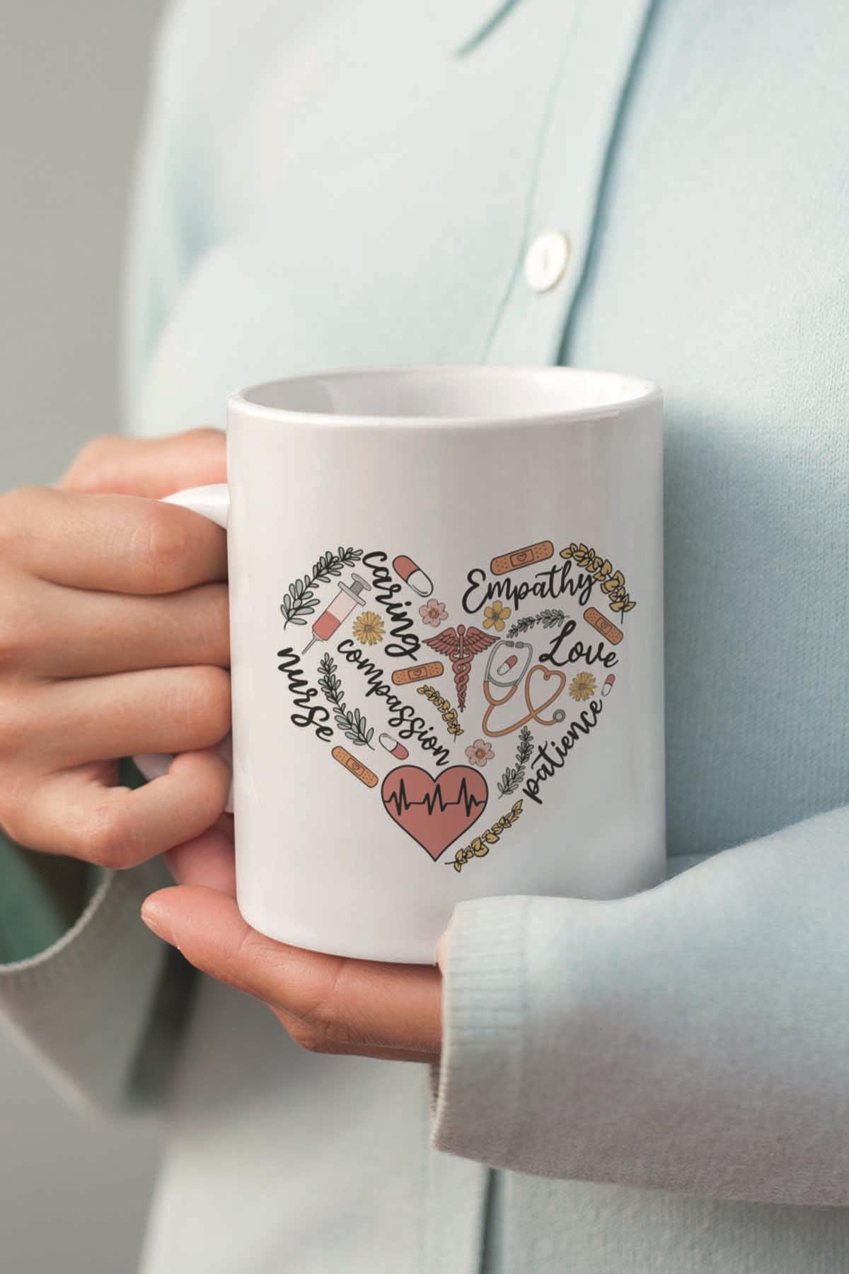 Hemşire Kalp Desenli Hediyelik Baskılı Kupa Bardak