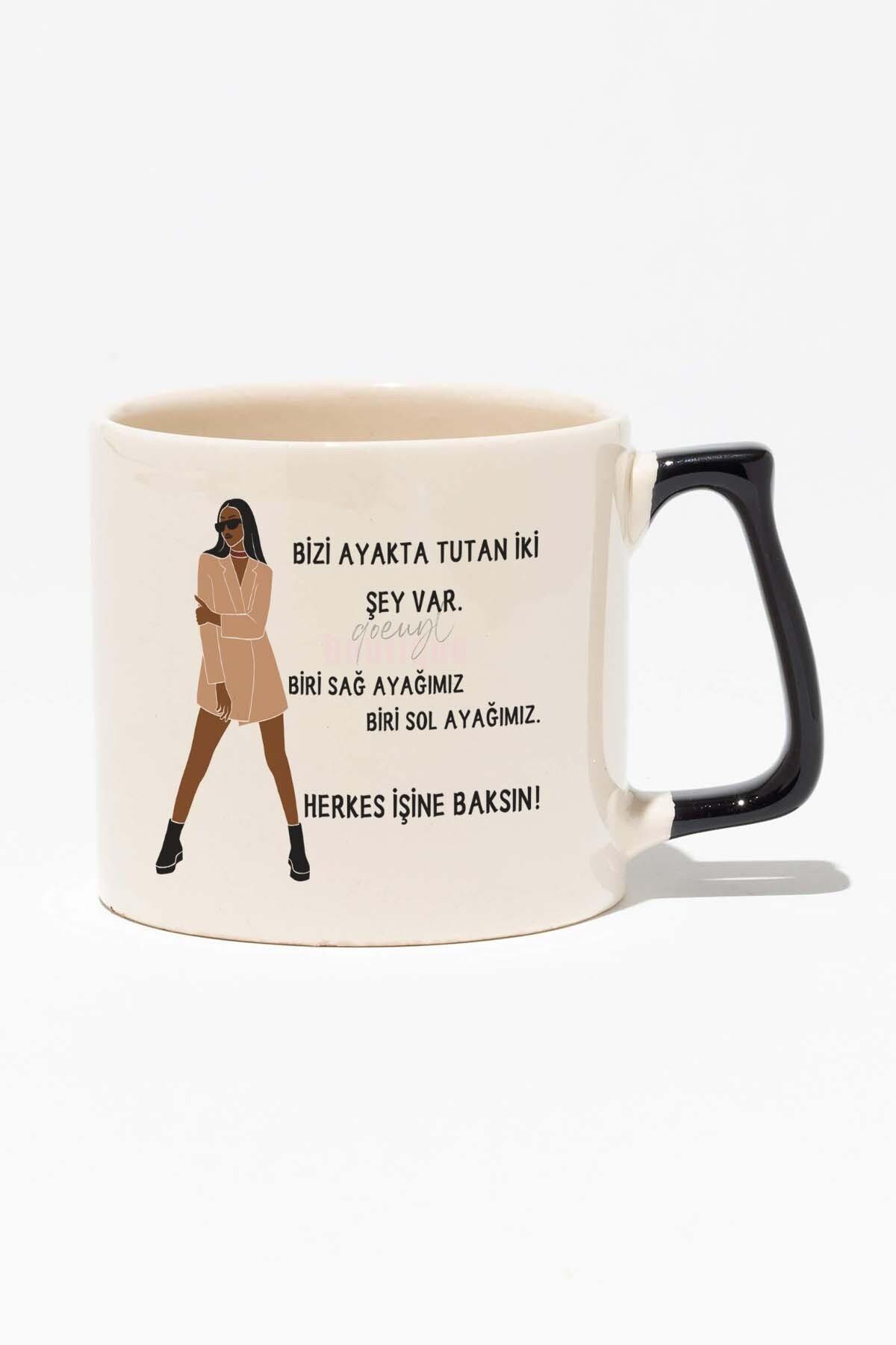 Herkes İşine Baksın Eğlenceli Hediyelik Beyaz Baskılı Siyah Kulplu Modern Seramik Kupa
