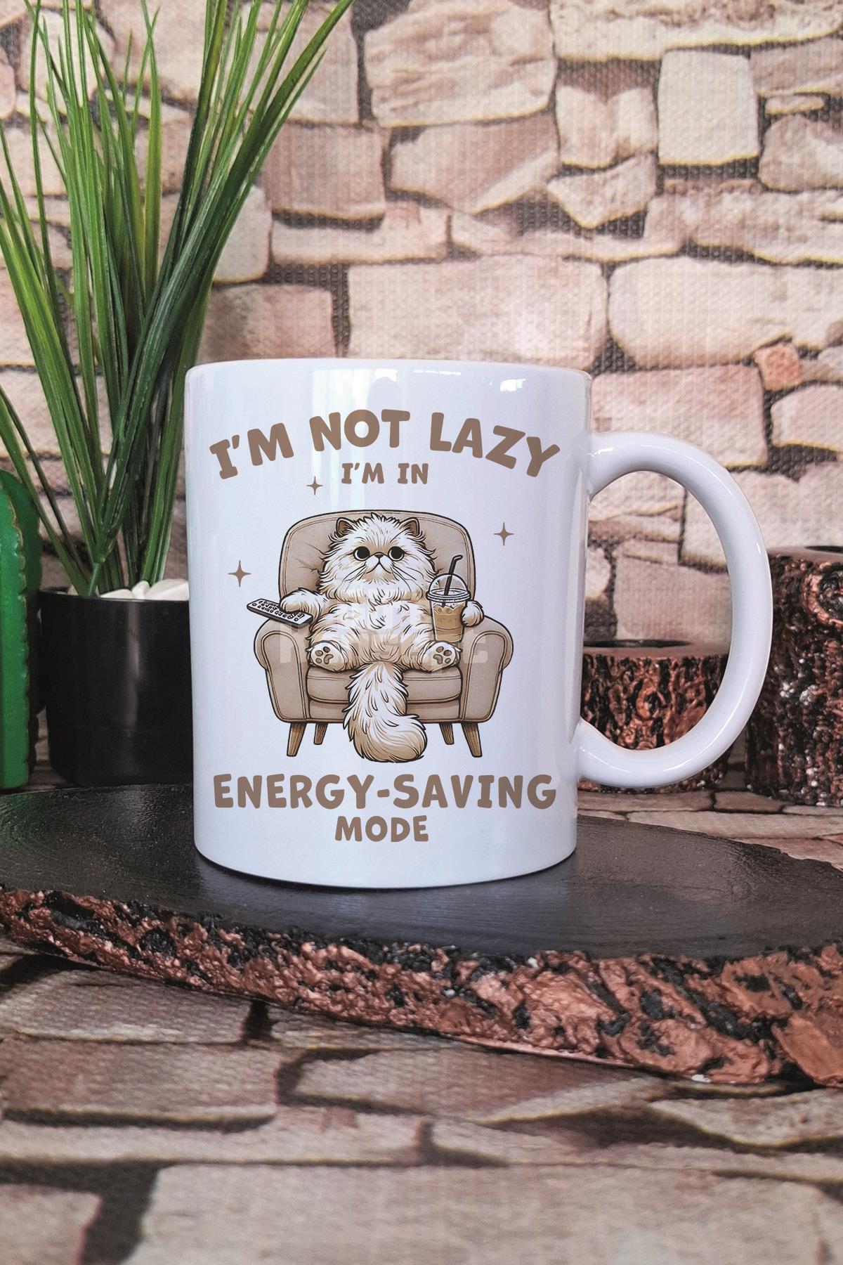 I Am Not Lazy I Am In Energy Save Mode Yazılı Komik Kedi Hediye Baskılı Kupa Bardak