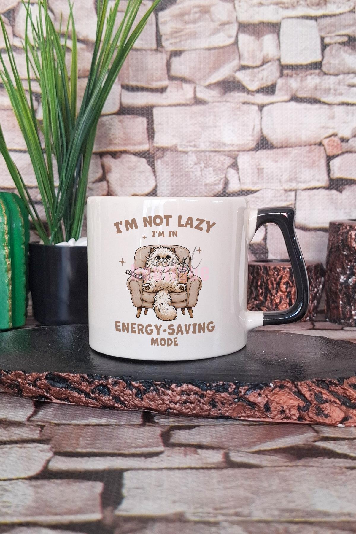 I Am Not Lazy I Am In Energy Save Mode Yazılı Komik Kedi Hediyelik Kulplu Kupa Bardak