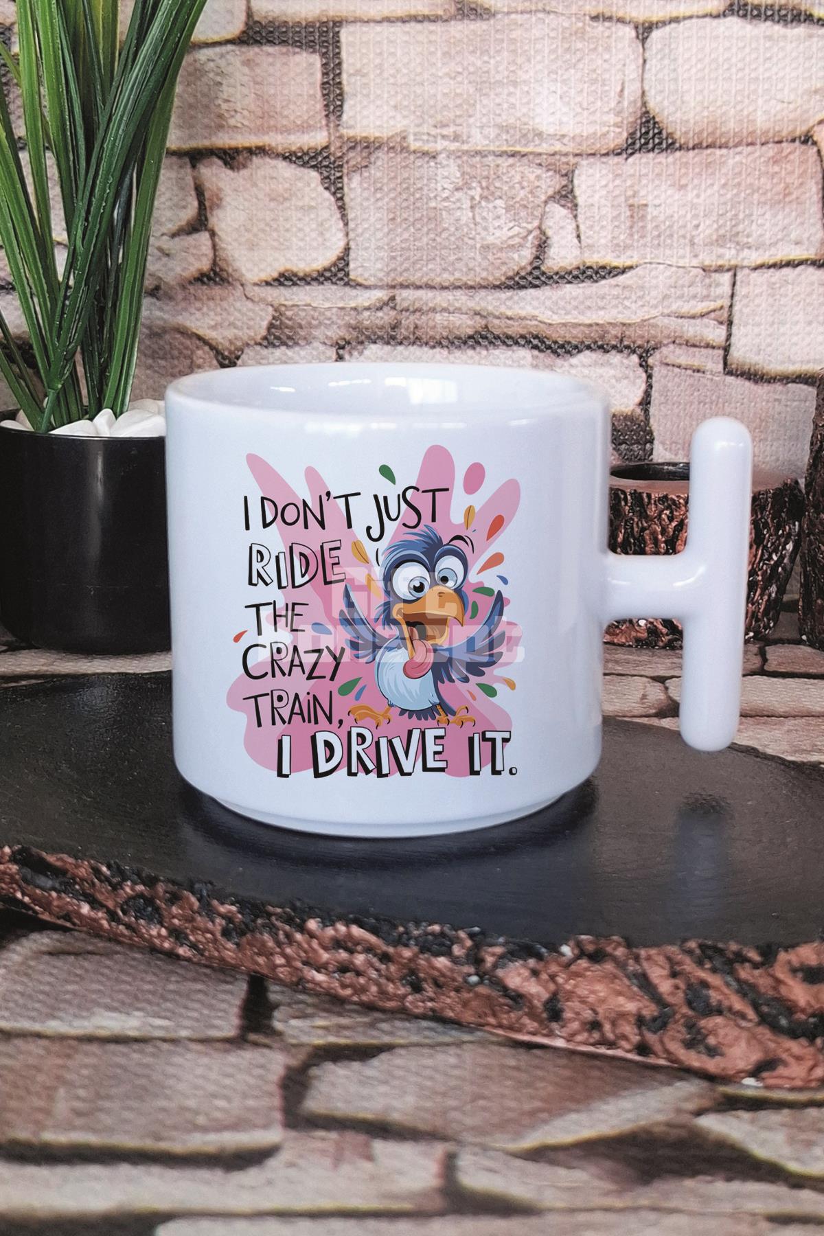 I Dont Just Ride The Crazy Train Baskılı T Kulplu Latte Fincanı Kupa Bardak