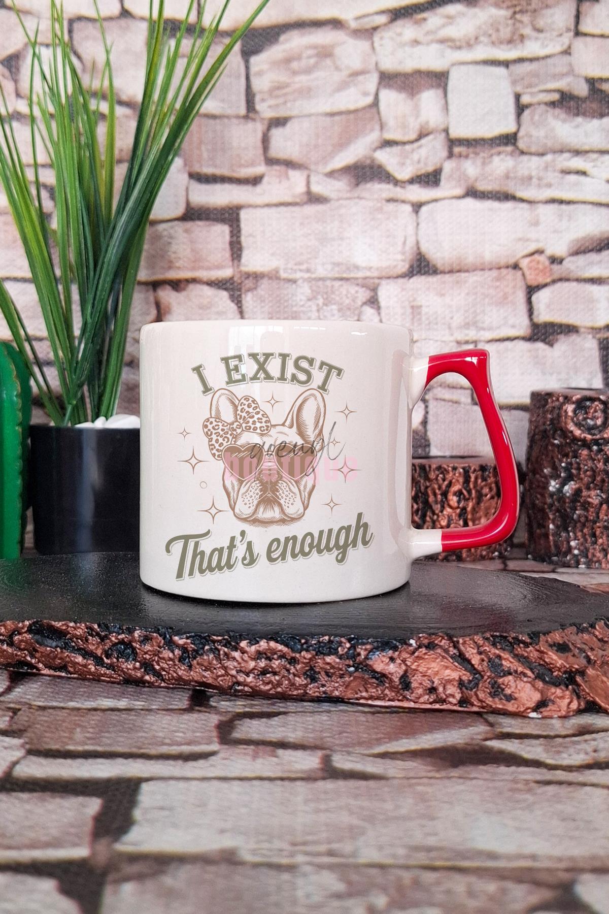 I Exist That's Enough Yazılı Komik Köpek Mottosu Felsefesi Hediyelik Kulplu Kupa Bardak