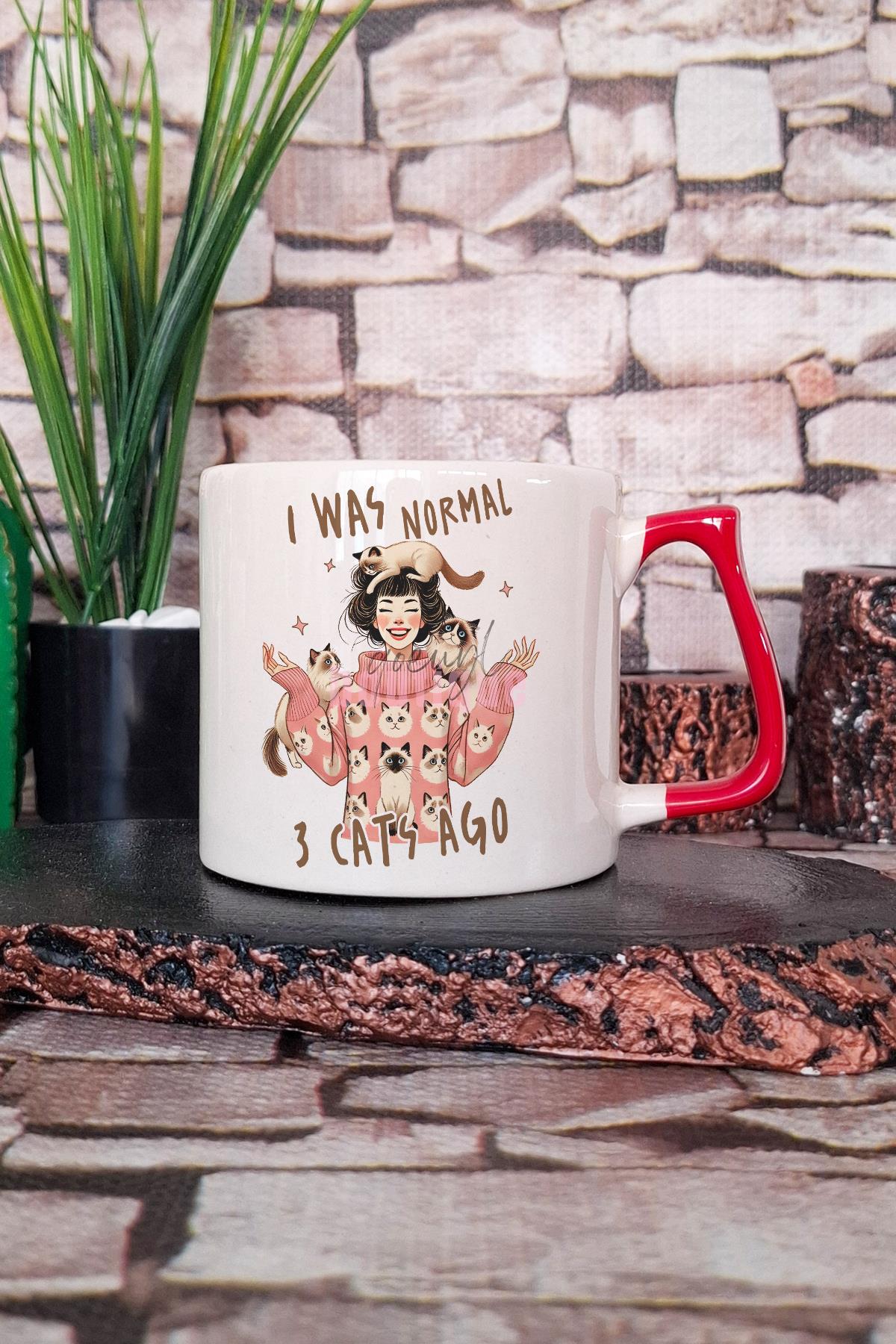 I Was Normal 3 Cats Ago Yazılı Komik Kedi Sahibi Esprisi Hediyelik Kulplu Kupa Bardak