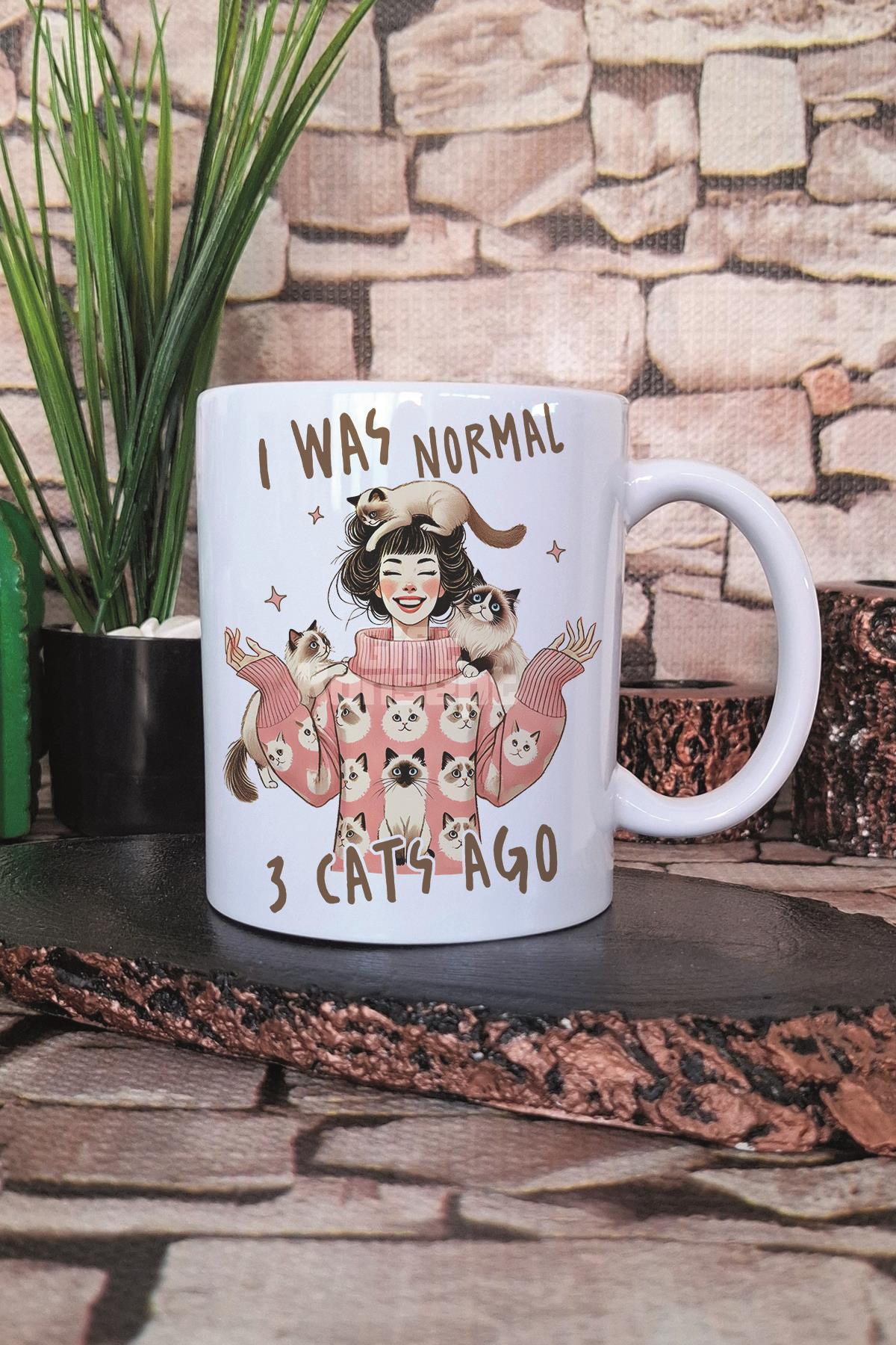 I Was Normal 3 Cats Ago Yazılı Komik Kedi Sahibi Hediyelik Baskılı Çay Kahve Sunum Kupa Bardak