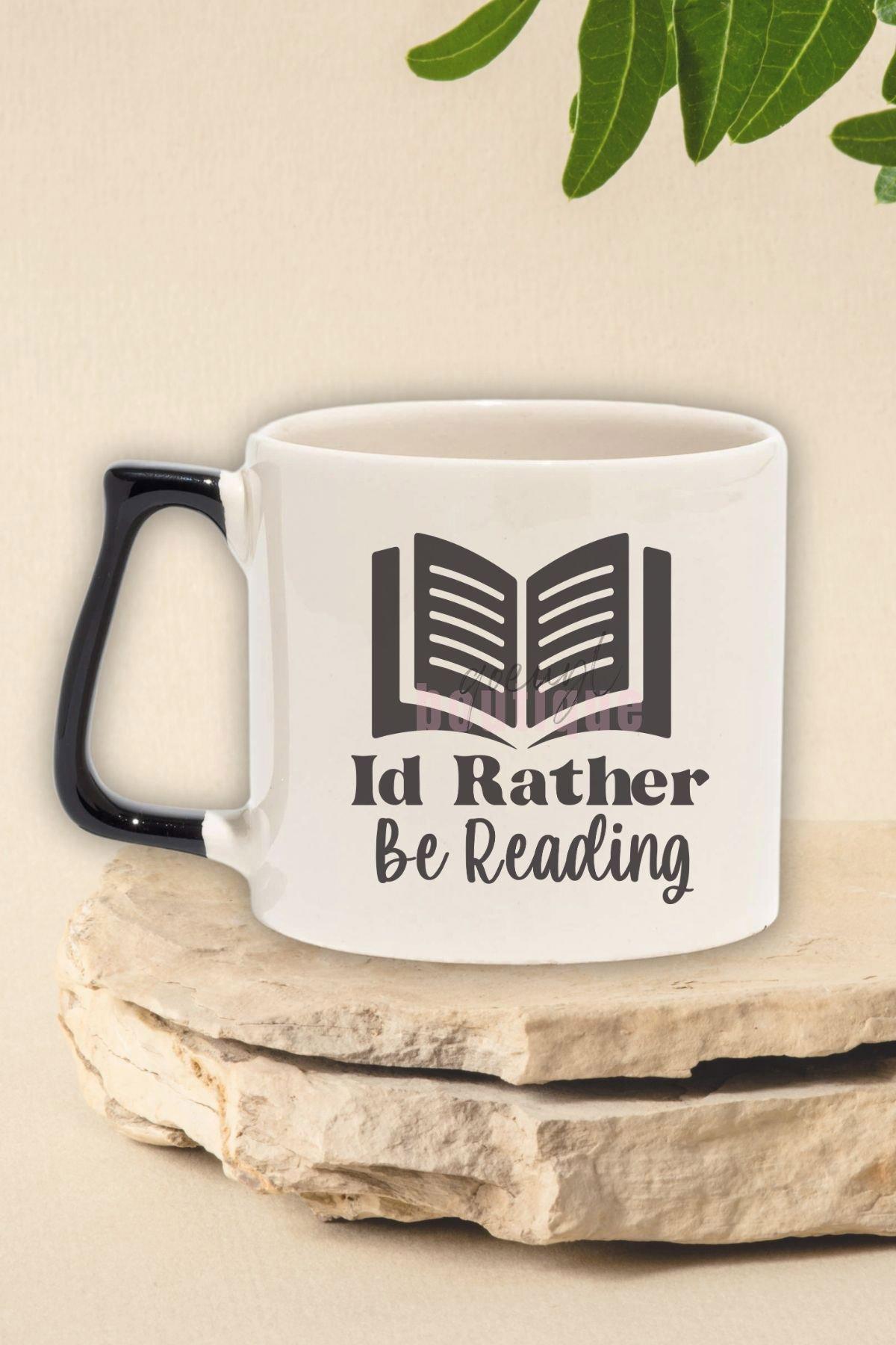 I'd Rather Be Reading Yazılı Kitap Sever Mottosu Hediyelik Siyah Kulplu Kupa Bardak