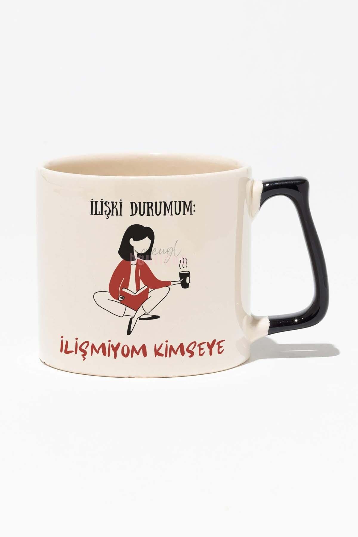 İlişki Durumum: İlişmiyom Kimseye Hediyelik Eğlenceli Baskılı Siyah Kulplu Modern Seramik Kupa