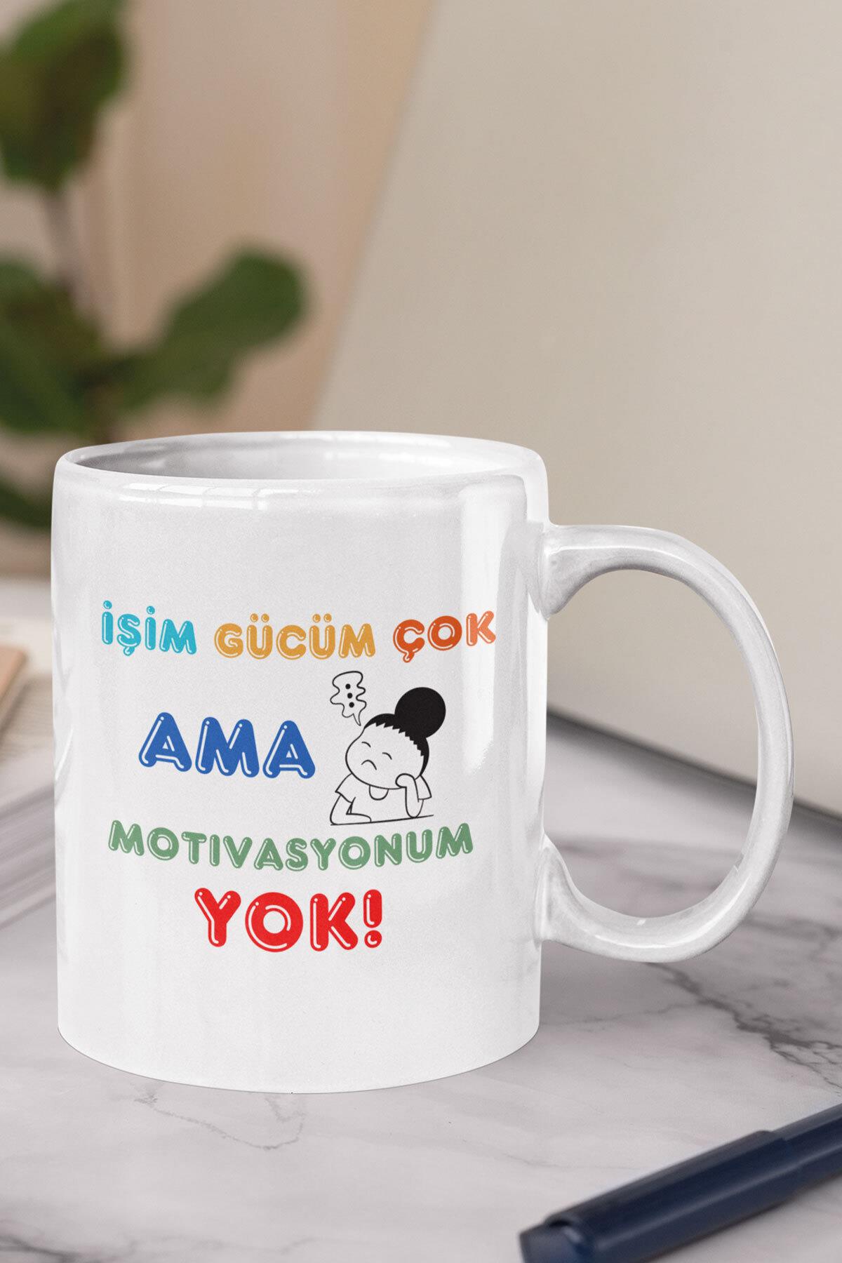 İşim Gücüm Çok Ama Motivasyonum Yok Baskılı Komik Hediyelik Eğlenceli Kupa Bardak