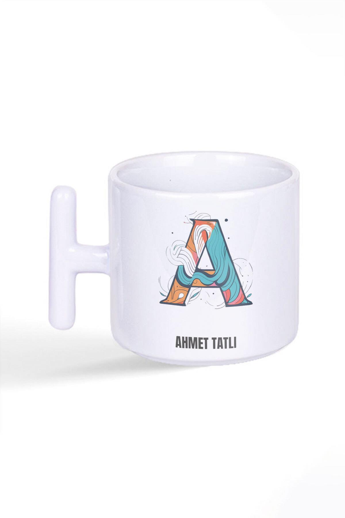 İsme Özel Kişiselleştirilebilir A Harfi Baskılı Latte Fincanı T Kulplu Kupa Bardak