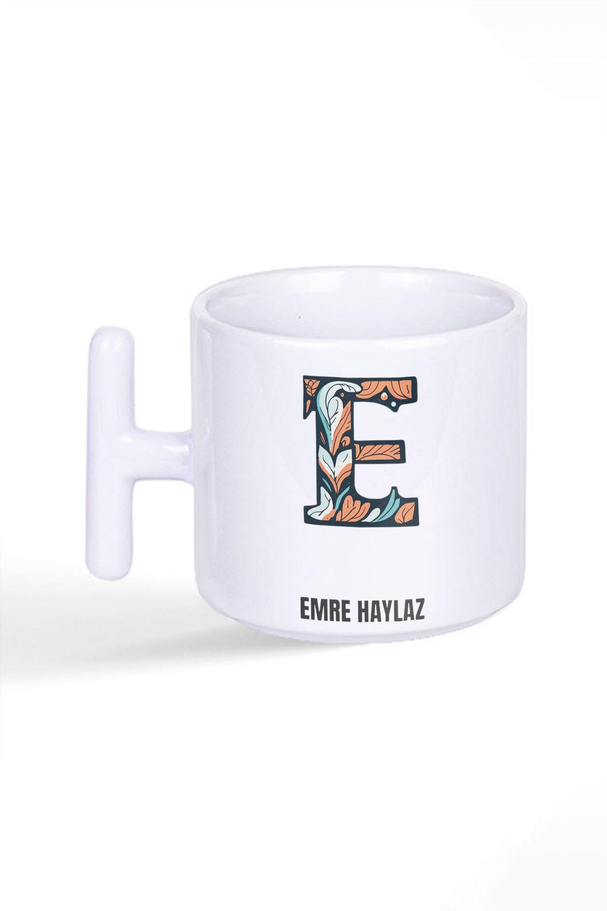 İsme Özel Kişiselleştirilebilir E Harfi Baskılı Latte Fincanı T Kulplu Kupa Bardak