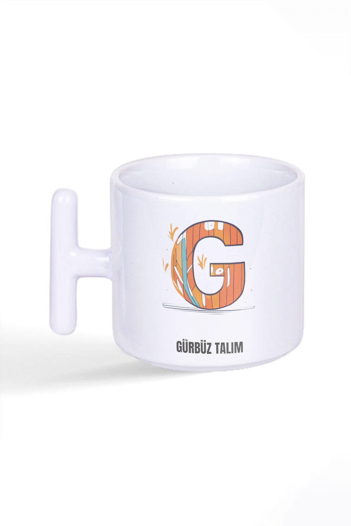 İsme Özel Kişiselleştirilebilir G Harfi Baskılı Latte Fincanı T Kulplu Kupa Bardak