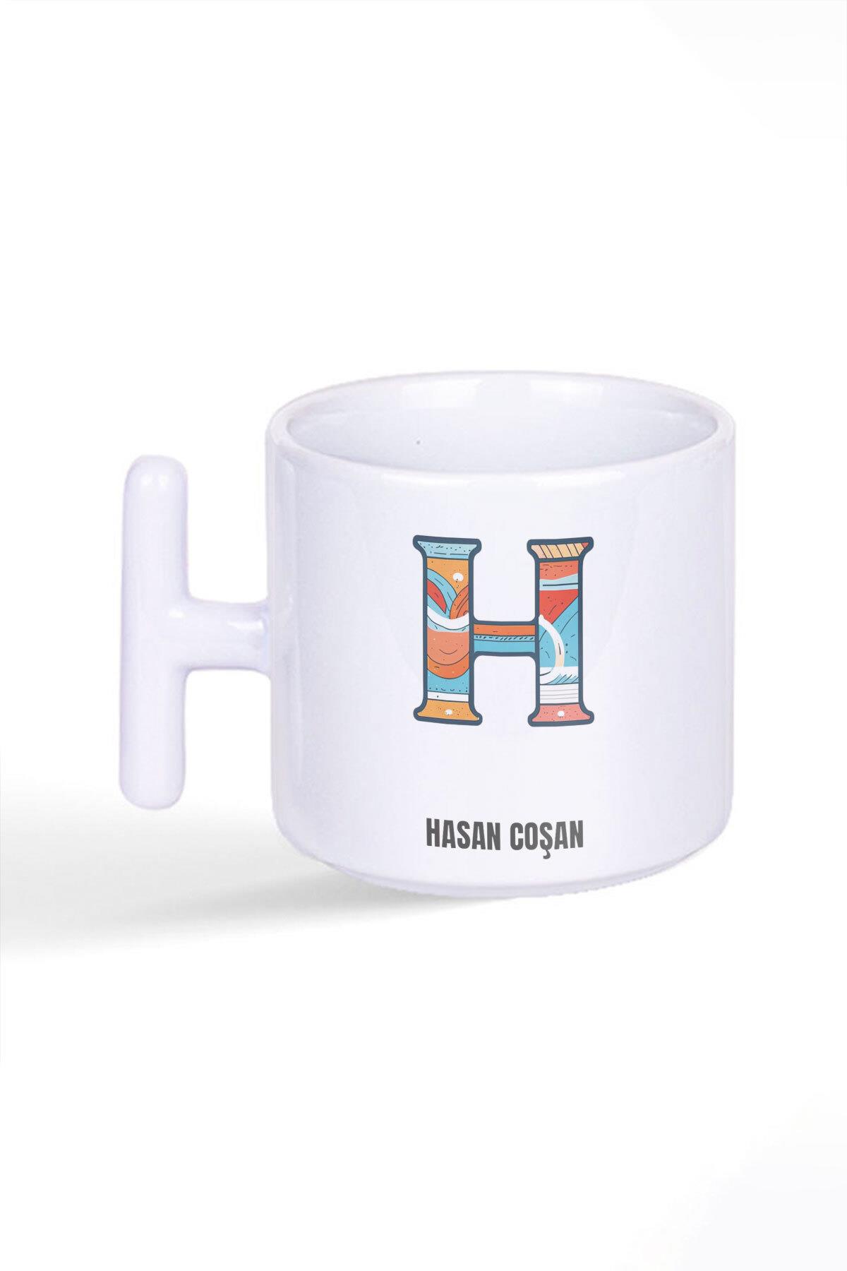 İsme Özel Kişiselleştirilebilir H Harfi Baskılı Latte Fincanı T Kulplu Kupa Bardak
