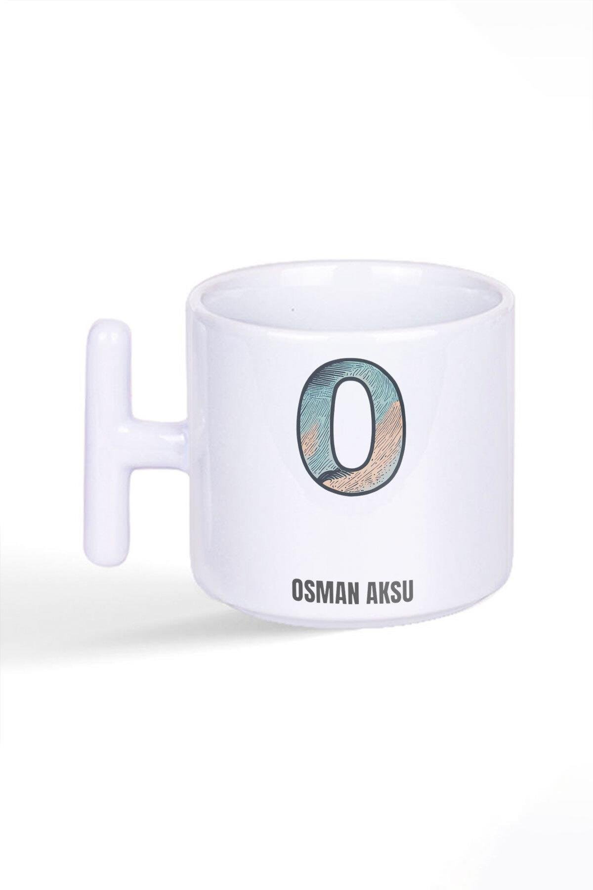 İsme Özel Kişiselleştirilebilir O Harfi Baskılı Latte Fincanı T Kulplu Kupa Bardak