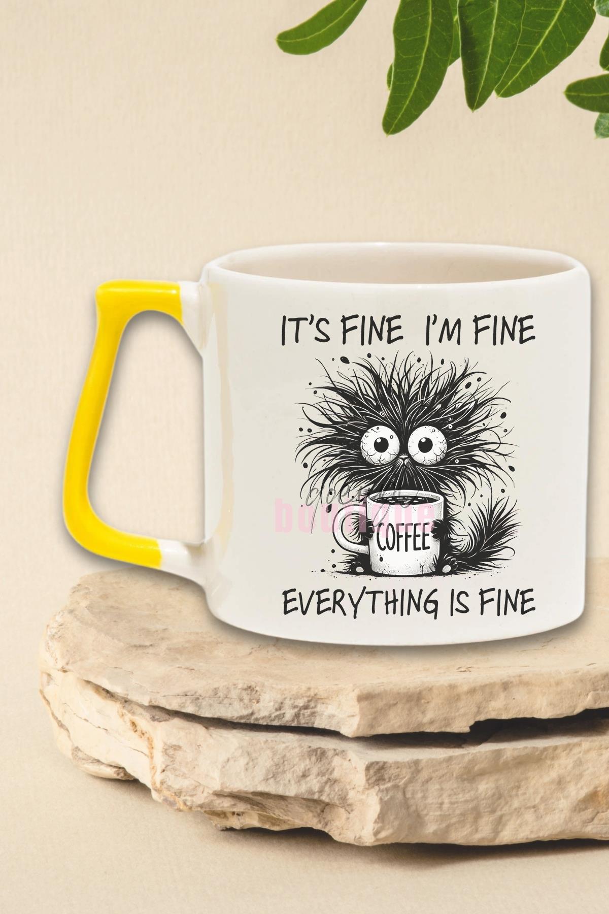 Its Fine I Am Fine Yazılı Komik Her Şey Yolunda Mizahı Hediyelik Kulplu Kupa Bardak