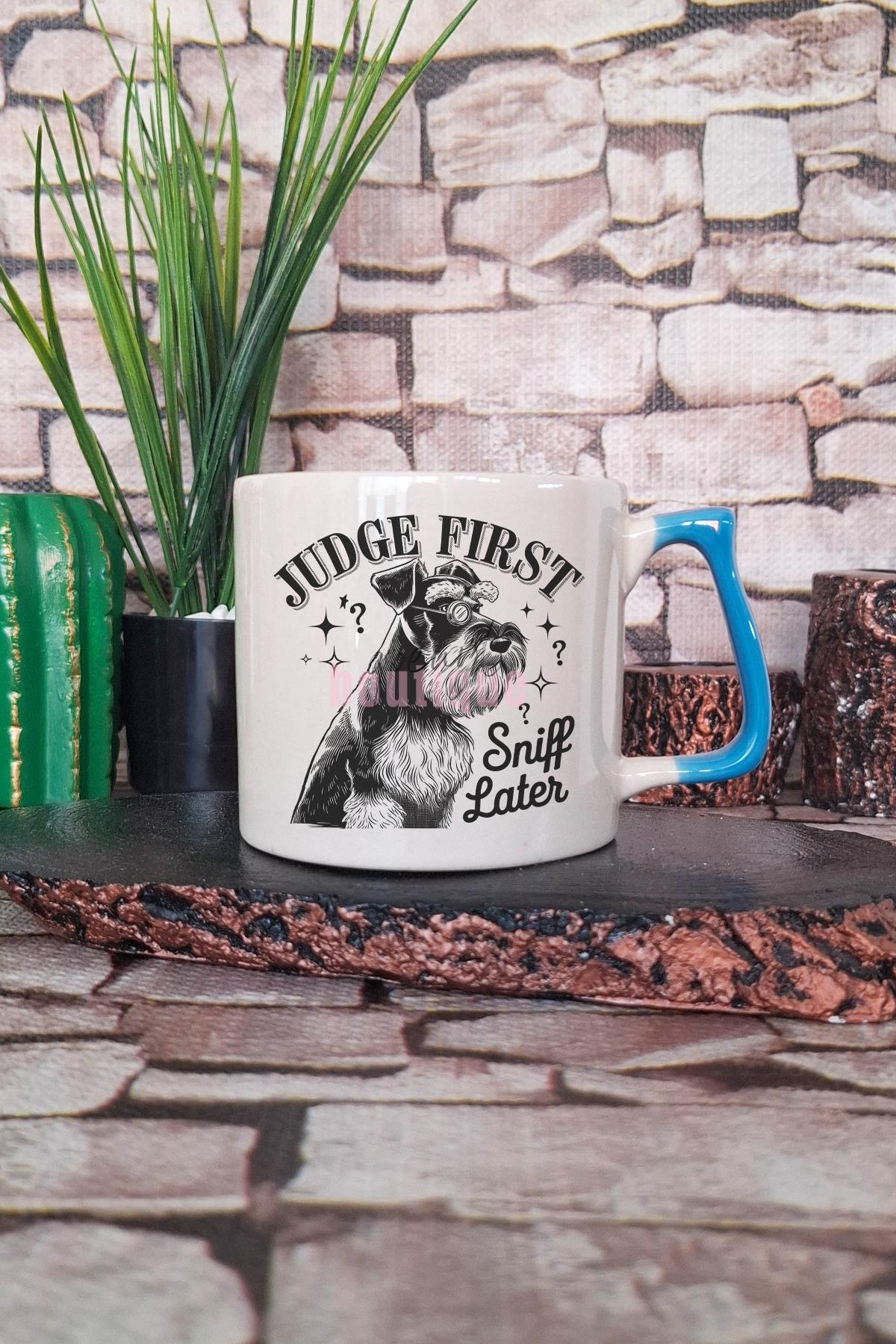 Judge First Sniff Later Yazılı Komik Köpek Davranışı Hediyelik Kulplu Kupa Bardak