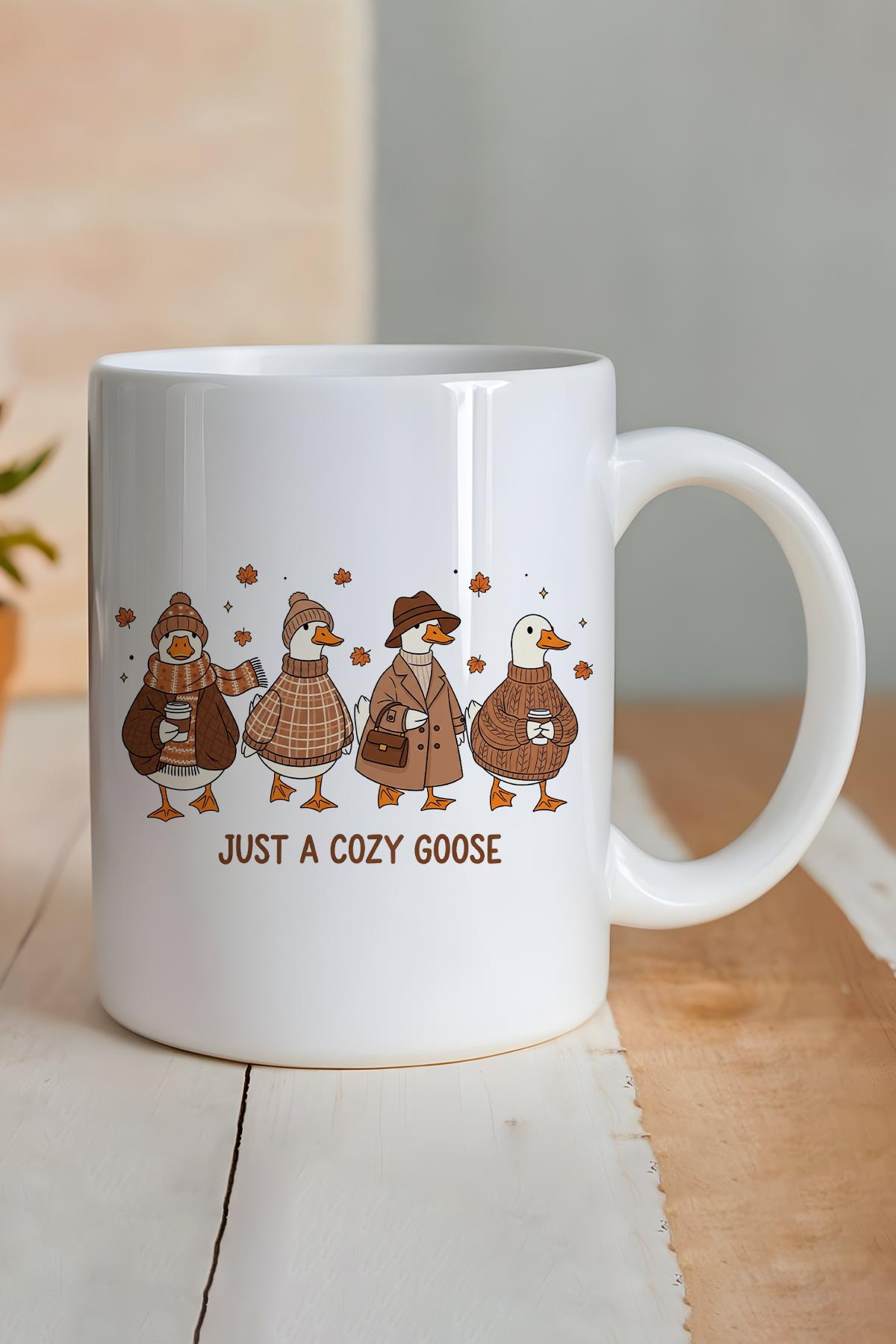 Just a Cozy Goose Sonbahar Sevimli Kazlar Baskılı Hediyelik Kupa Bardak