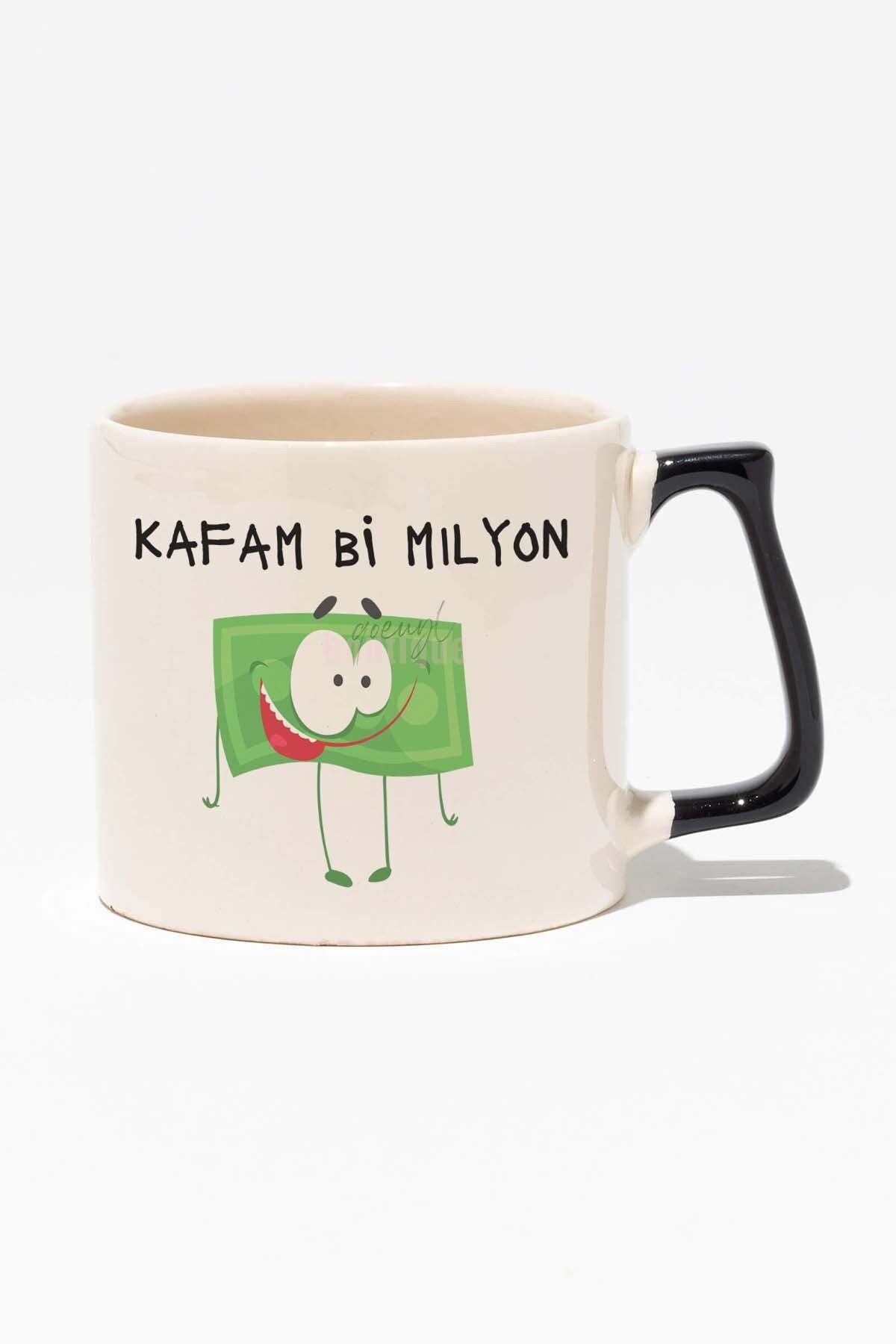 Kafam Bi Milyon Eğlenceli Komik Hediyelik Beyaz Baskılı Siyah Kulplu Modern Seramik Kupa