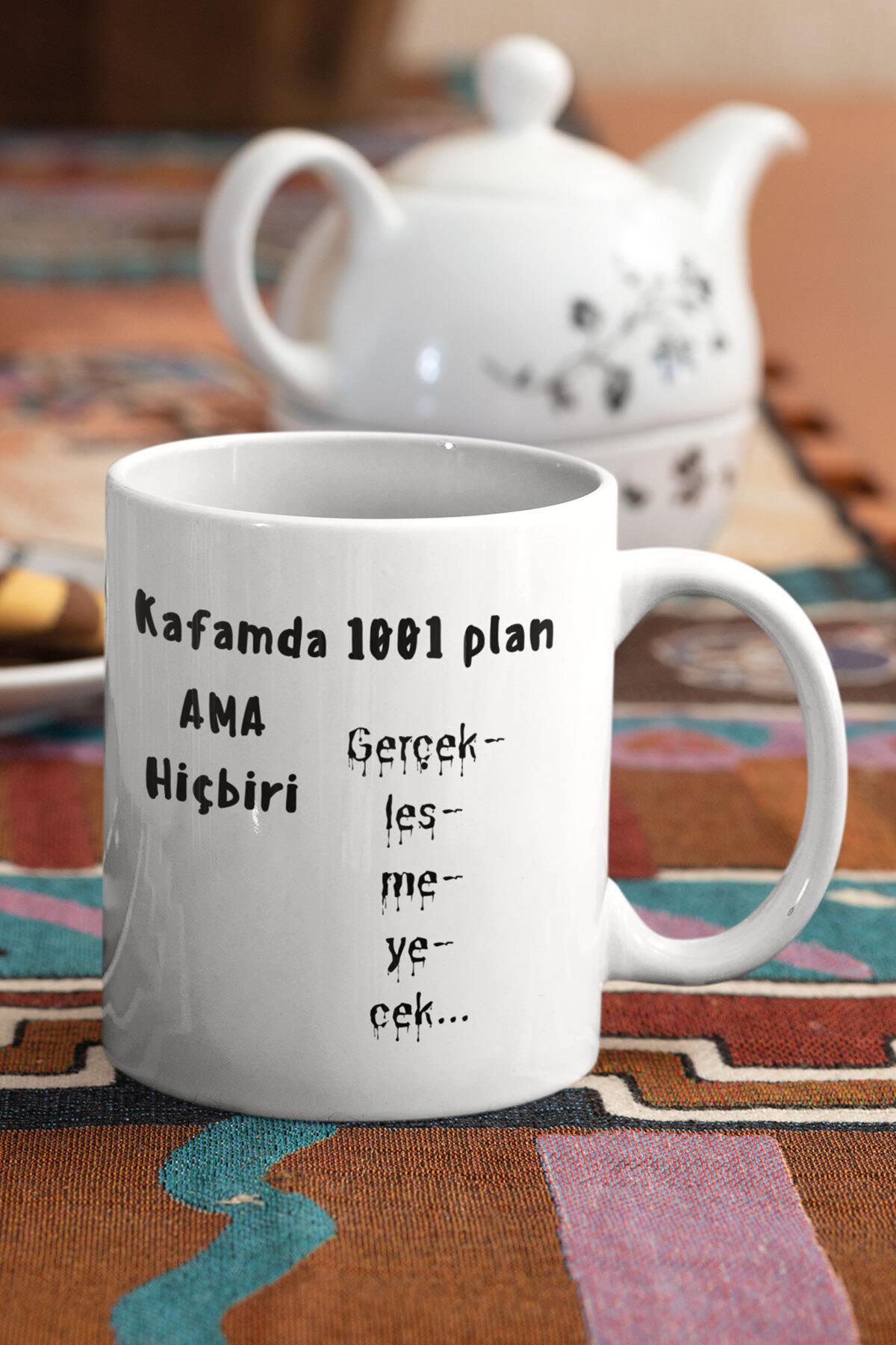 Kafamda 1001 Plan Baskılı Komik Hediye Doğum Günü Arkadaşlık Kupa Bardak