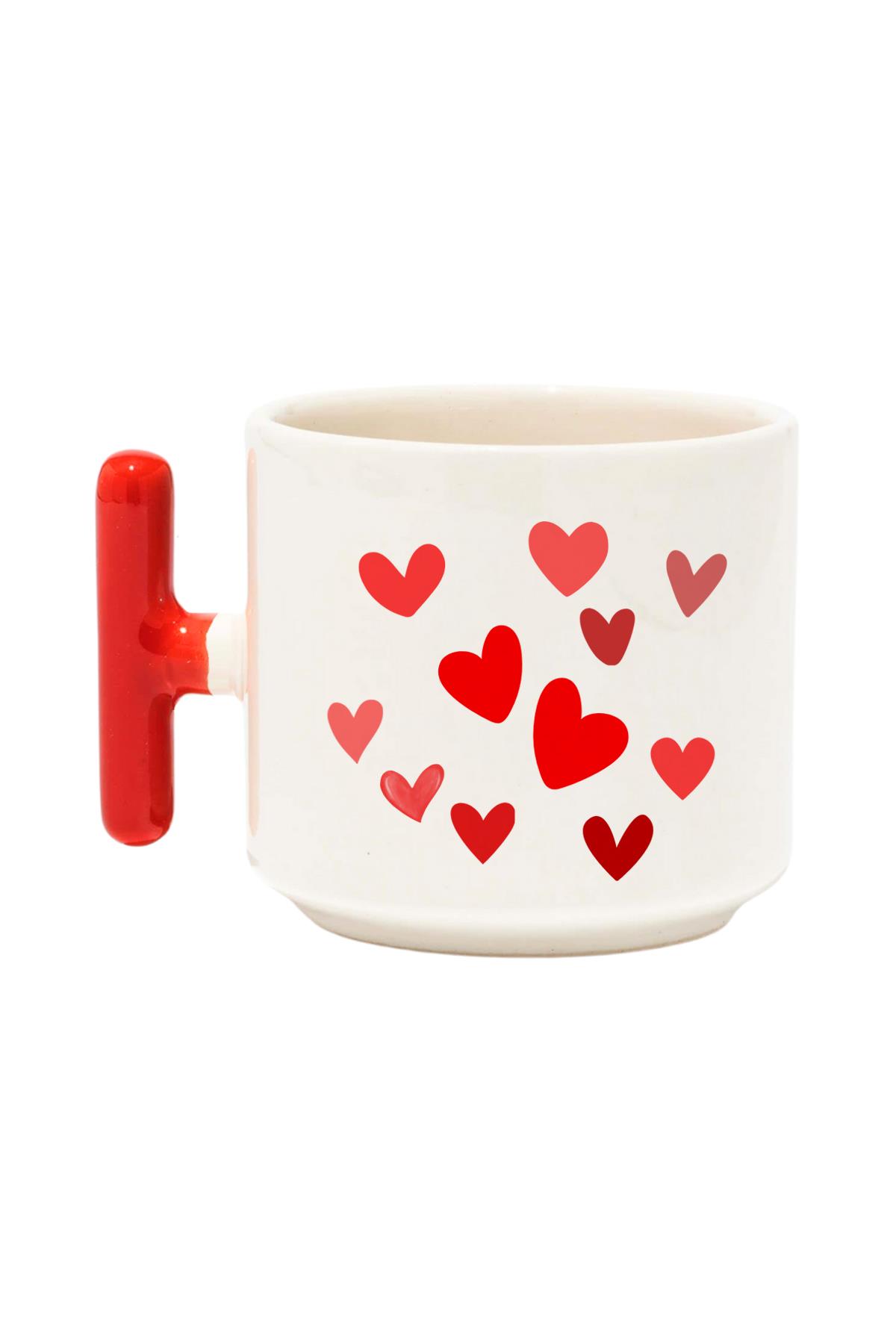 Kalp Süslemeli Renkli T Kulplu Hediyelik Latte Fincanı Kupa Bardak