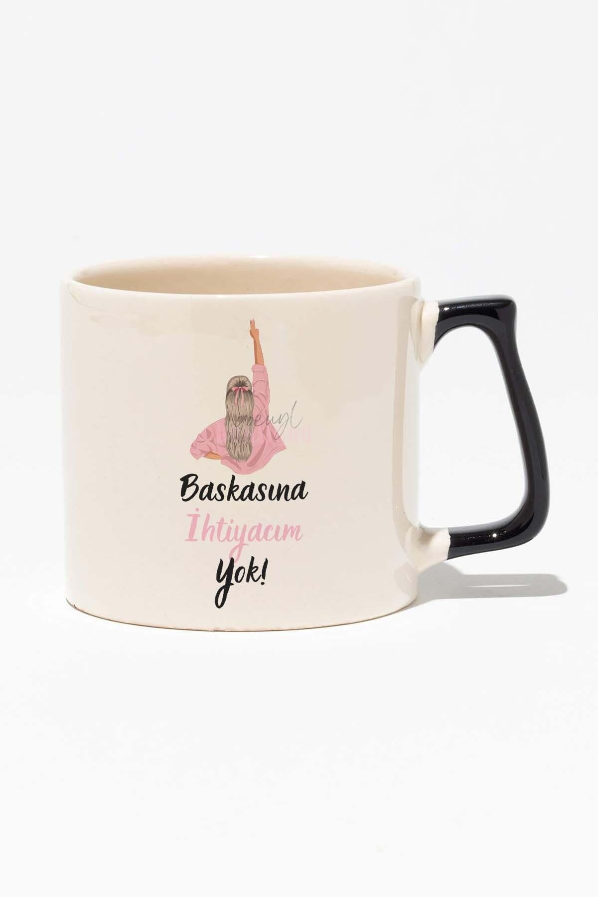 Kimseye İhtiyacım Yok Hediyelik Motivasyon Baskılı Siyah Kulplu Modern Seramik Kupa