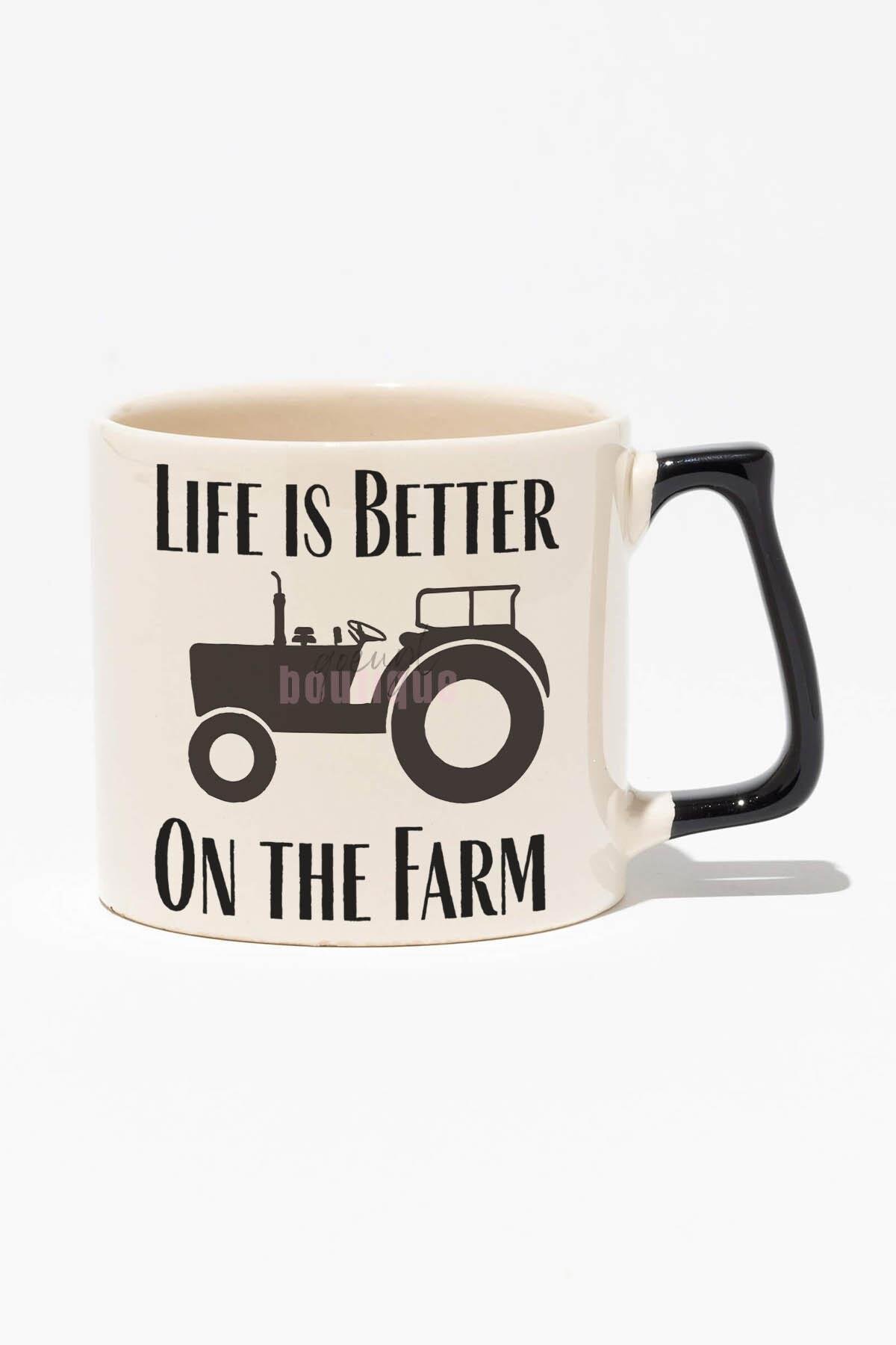 Life Is Better On The Farm Baskılı | Çiftçi Çiftlik Hediyelik | Siyah Kulplu Modern Seramik Kupa
