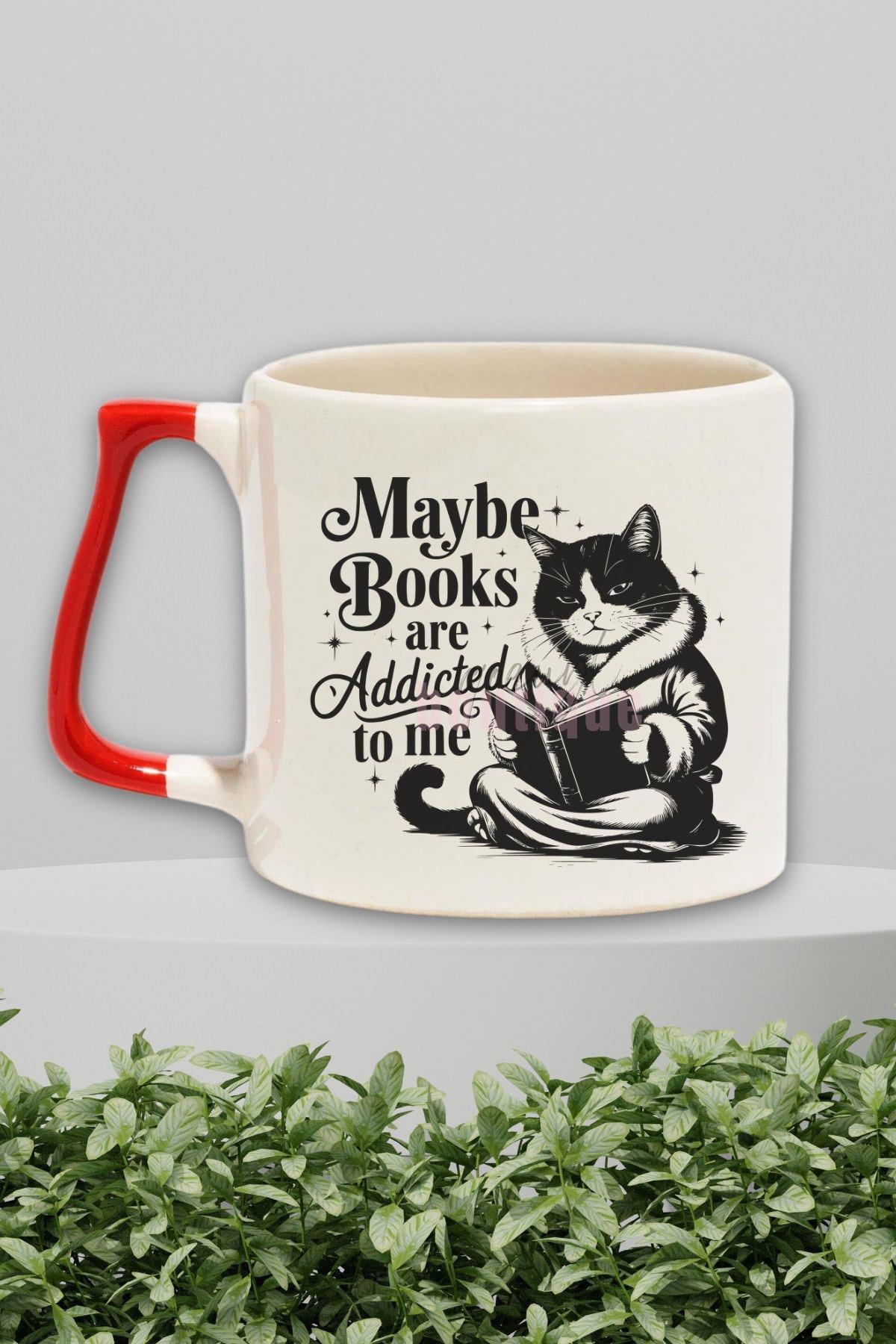 Maybe Books Are Addicted To Me Yazılı Komik Kitap Sever Hediyelik Kırmızı Kulplu Kupa Bardak