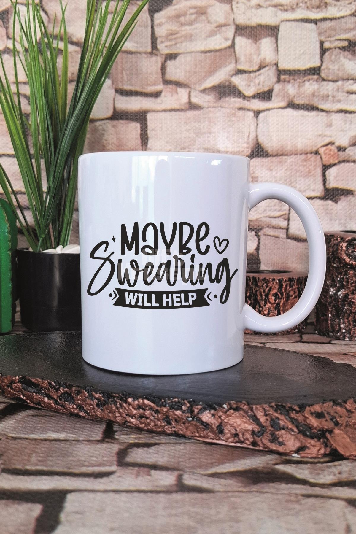 Maybe Swearing Will Help Yazılı Komik Stres Atma Sözü Hediye Baskılı Kupa Bardak