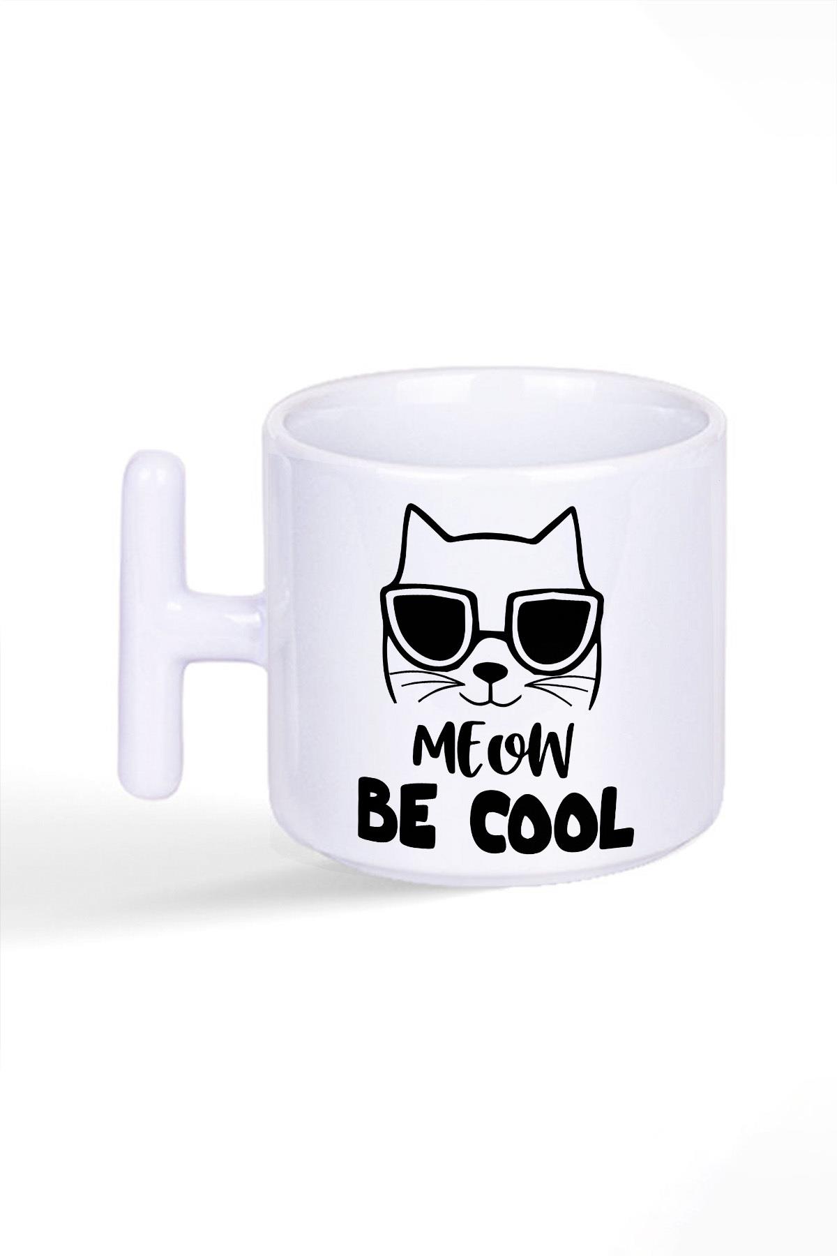 Meow Be Cool Sevimli Kedi Baskılı T Kulplu Latte Fincan Kupa Bardak