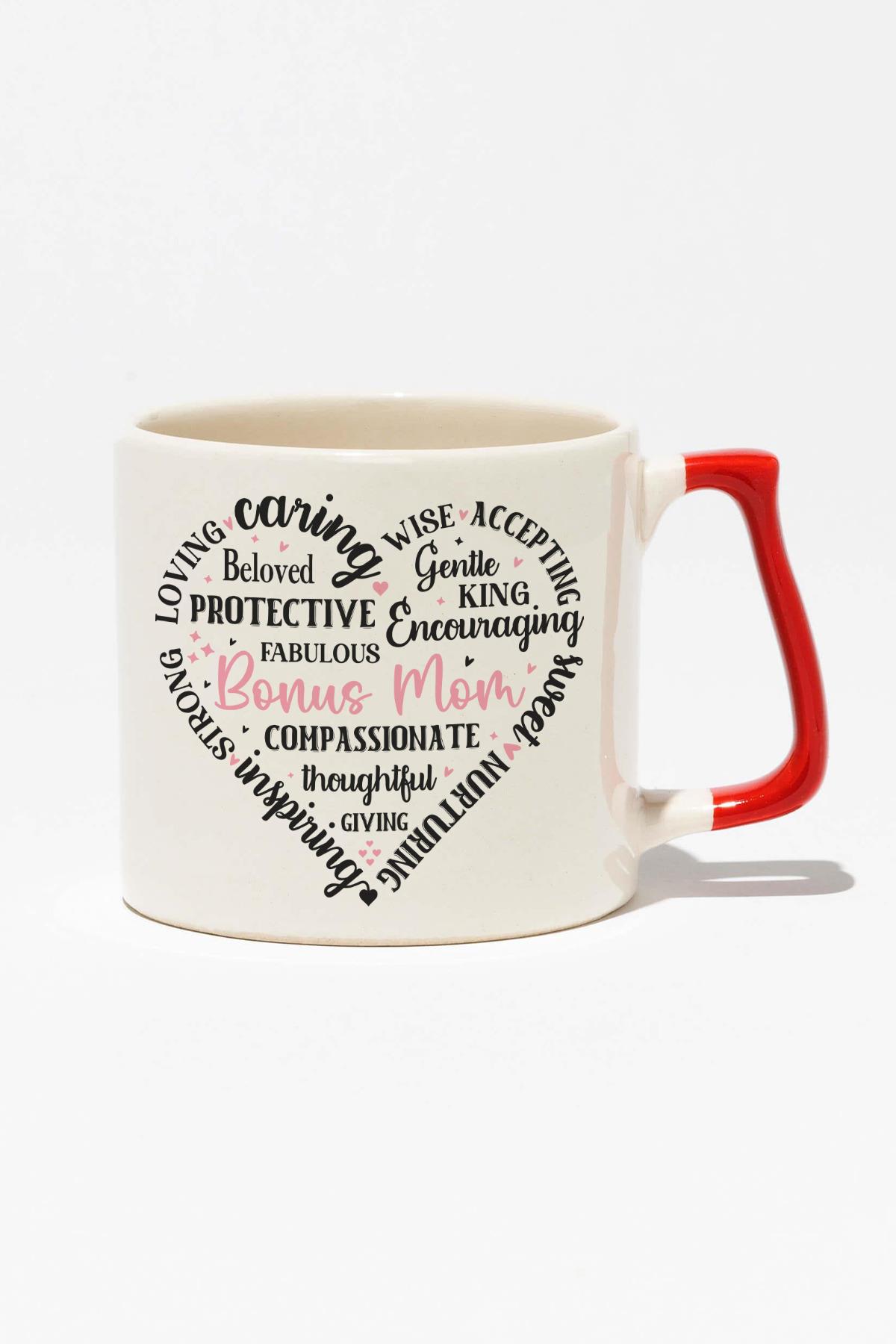 Mom Kalp Şekilli Yazılı Baskılı Anneler Günü Hediyelik Siyah Kulplu Modern Seramik Kupa