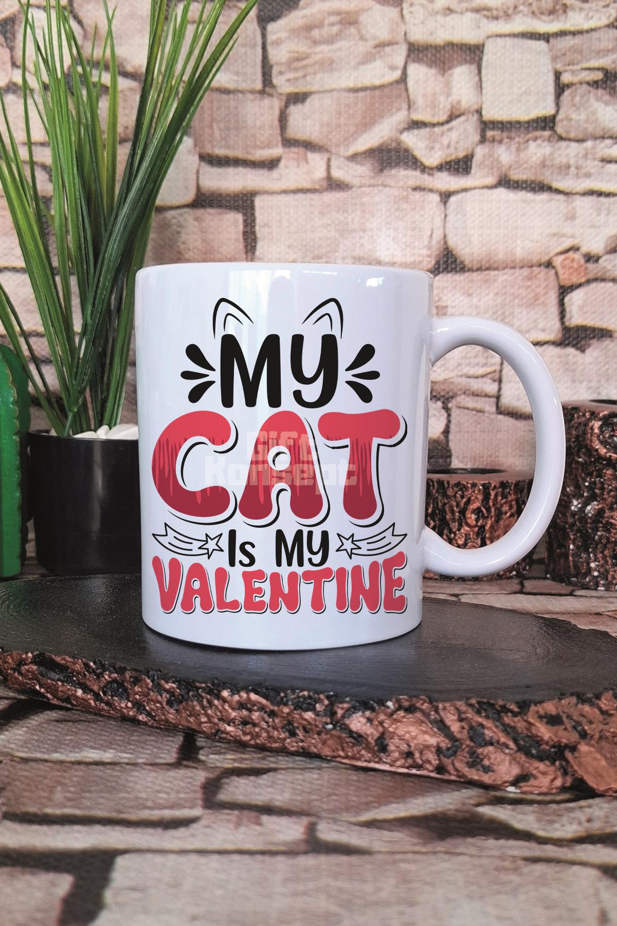 My Cat Is My Valentine Baskılı Kedisever Sevgililer Günü Hediye Baskılı Kupa Bardak